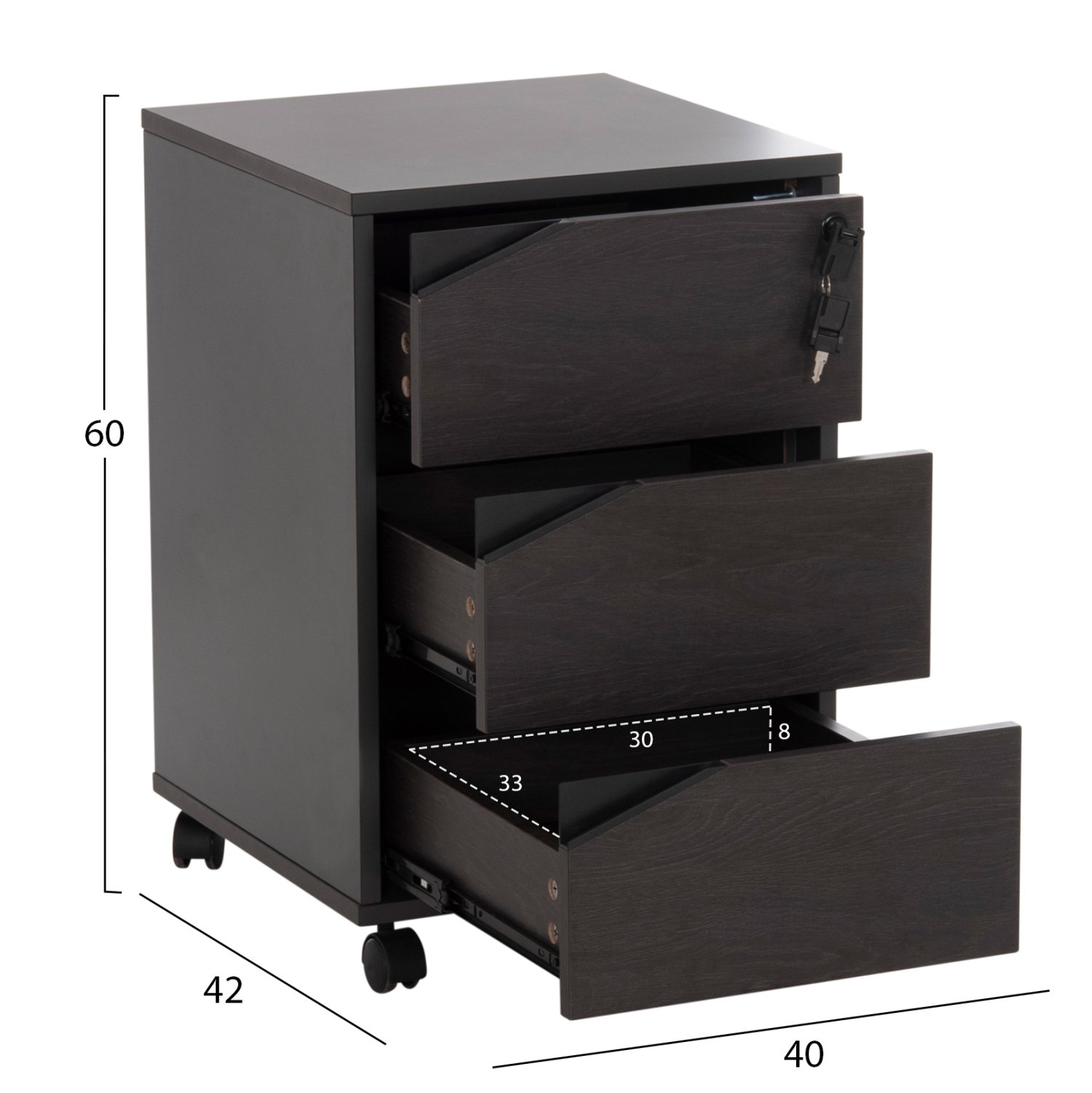 *Η κλειδαριά κλειδώνει ΟΛΑ τα συρτάρια ταυτόχρονα*