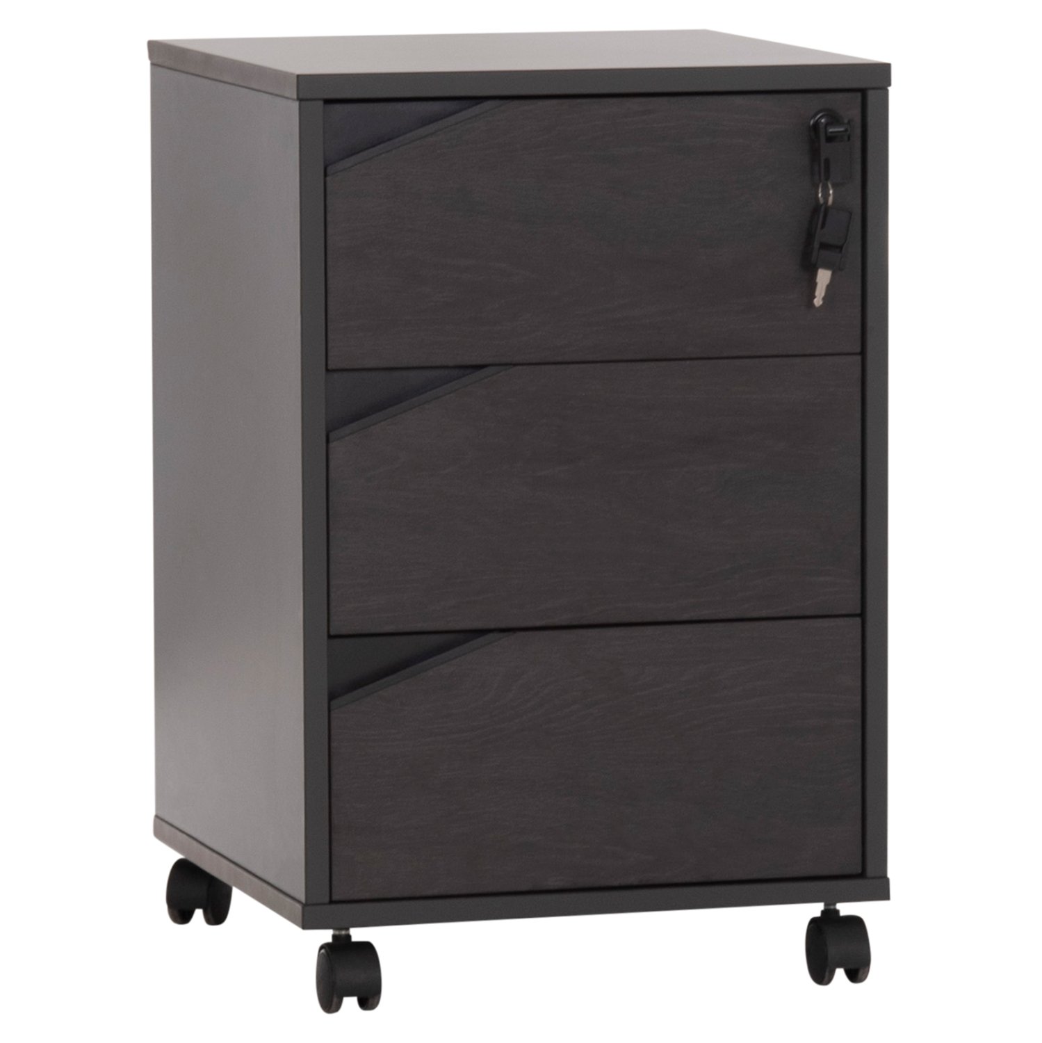 Τροχήλατη συρταριέρα γραφείου από μελαμίνη σε γκρι και βέγγε απόχρωση, με κλειδαριά, σε μοντέρνο design.