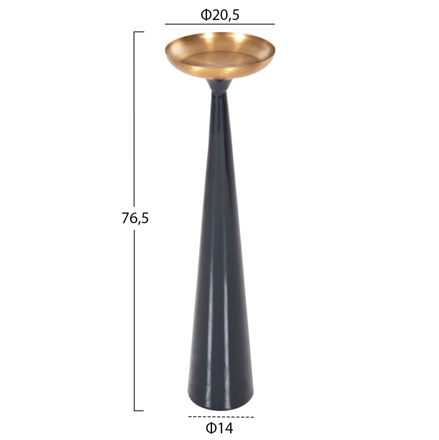 Το GUNTUR είναι ένα διακοσμητικό κηροπήγιο δαπέδου (κυρίως) και αποτελεί ακόμα μια καινούργια προσθήκη στην γκάμα μας. Είναι εξολοκλήρου μεταλλικό και έχει κωνική κολώνα σε ΜΠΛΕ ΑΝΘΡΑΚΙ χρώμα και «πιατάκι» σε ΧΡΥΣΟ χρώμα. Βέβαια, στο «πιατάκι» εκτός από κεριά μπορείτε να τοποθετήσετε και οτιδήποτε άλλο θέλετε ως διακοσμητικό. Ιδανικό τόσο για το σπίτι, όσο και για επαγγελματικούς χώρους, θα μαγνητίσει το ενδιαφέρον των επισκεπτών.