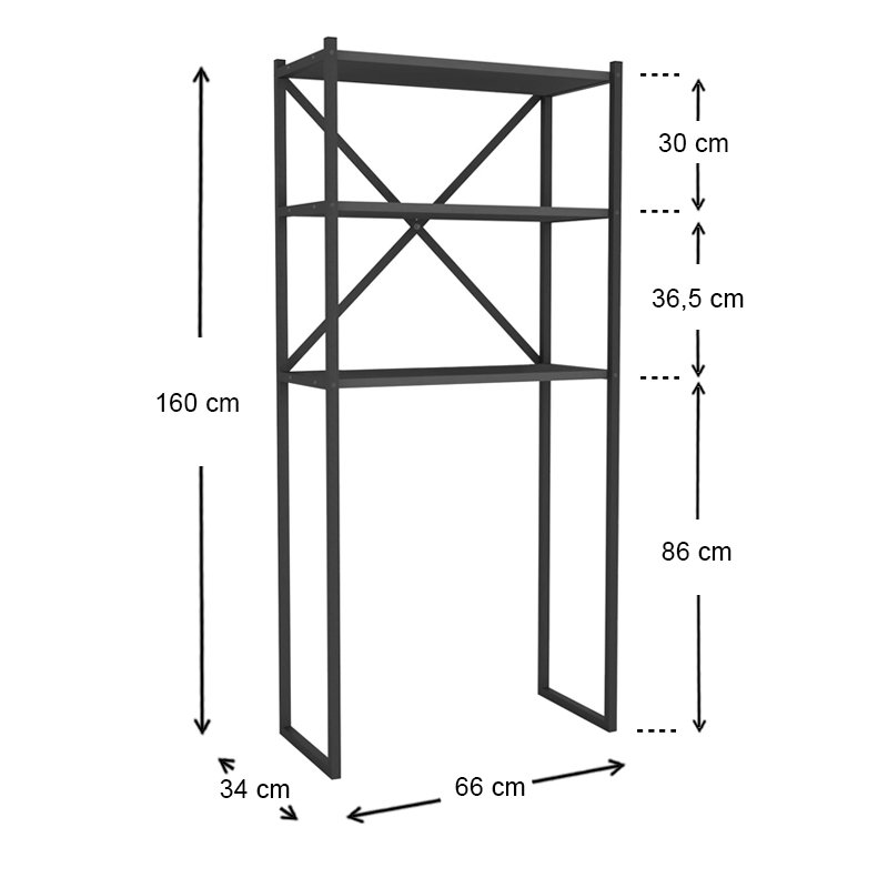 Έπιπλο πλυντηρίου Mindy Megapap μεταλλικό – μελαμίνης χρώμα μαύρο – ανθρακί 66x34x160εκ.
