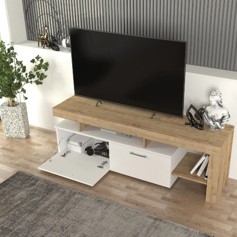 Έπιπλο τηλεόρασης Acnes Megapap χρώμα λευκό – sapphire oak 160x40x53εκ.