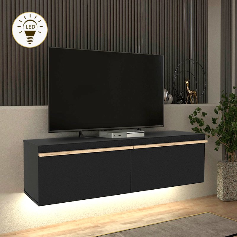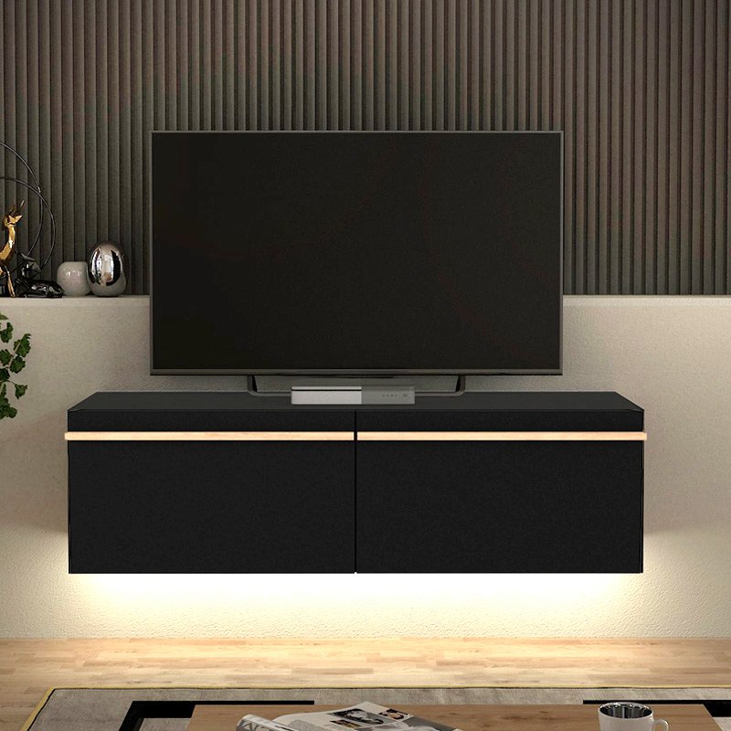 Έπιπλο τηλεόρασης επιτοίχιο Morel Megapap με LED χρώμα μαύρο 140×41,8×40εκ.