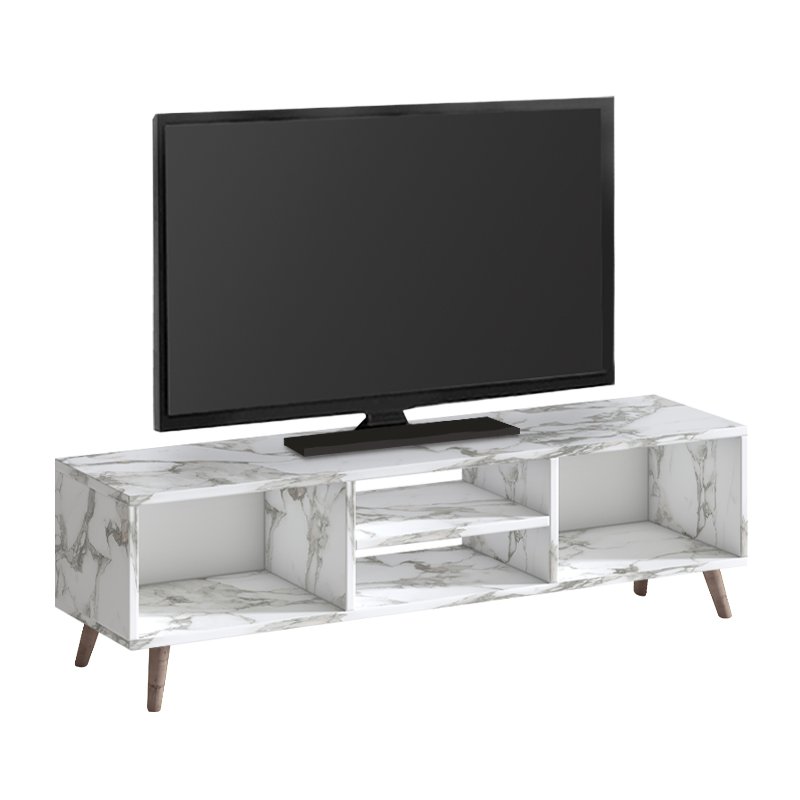 Έπιπλο τηλεόρασης Loren Megapap χρώμα λευκό εφέ μαρμάρου 120x30x40εκ.