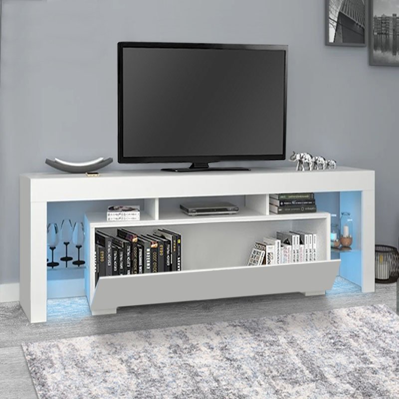 Έπιπλο τηλεόρασης Stilo Megapap με φωτισμό LED χρώμα λευκό 150x37x52εκ.