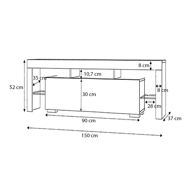- Διαστάσεις: Μήκος 150 x Βάθος 37 x Ύψος 52 εκ.