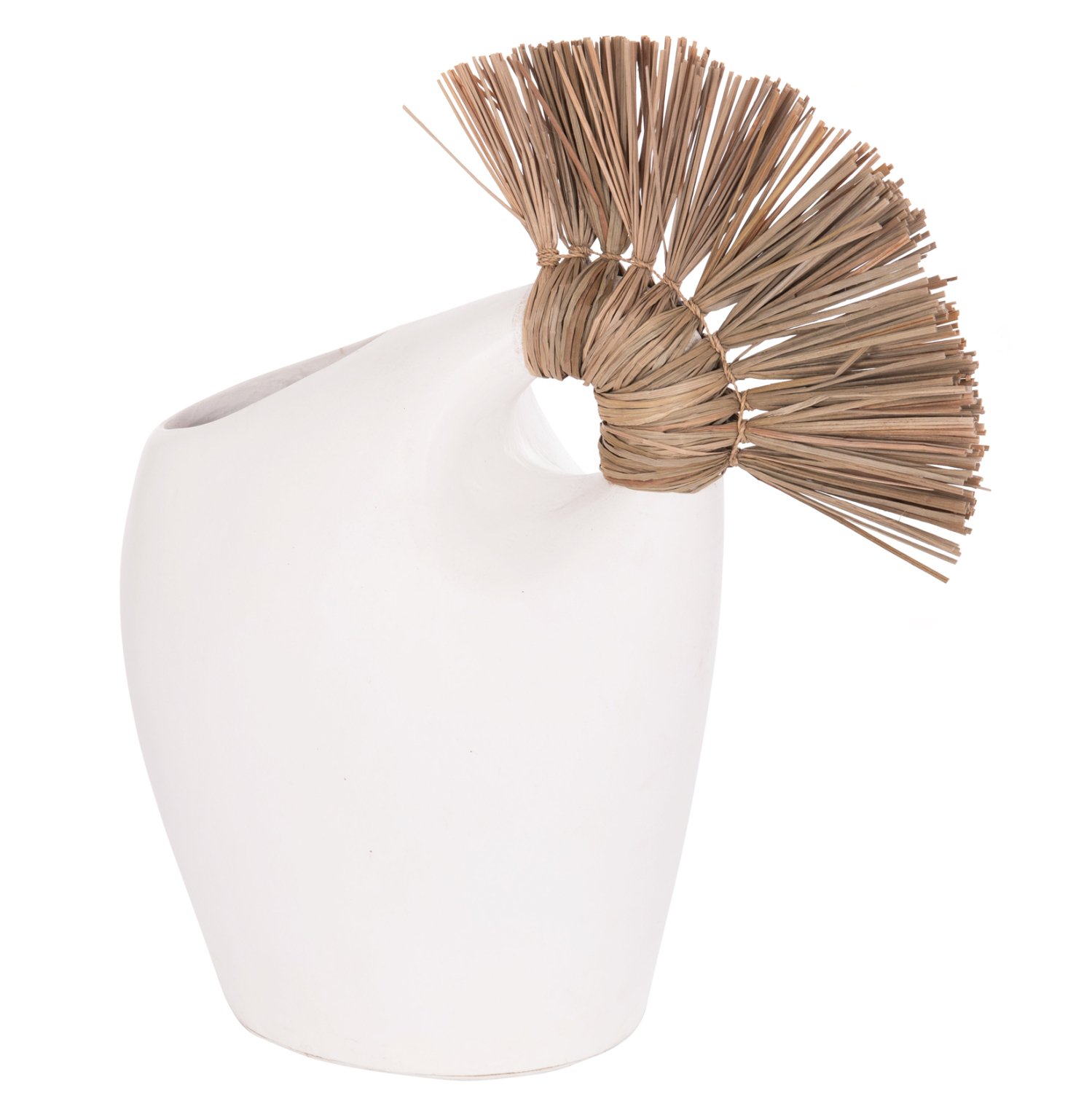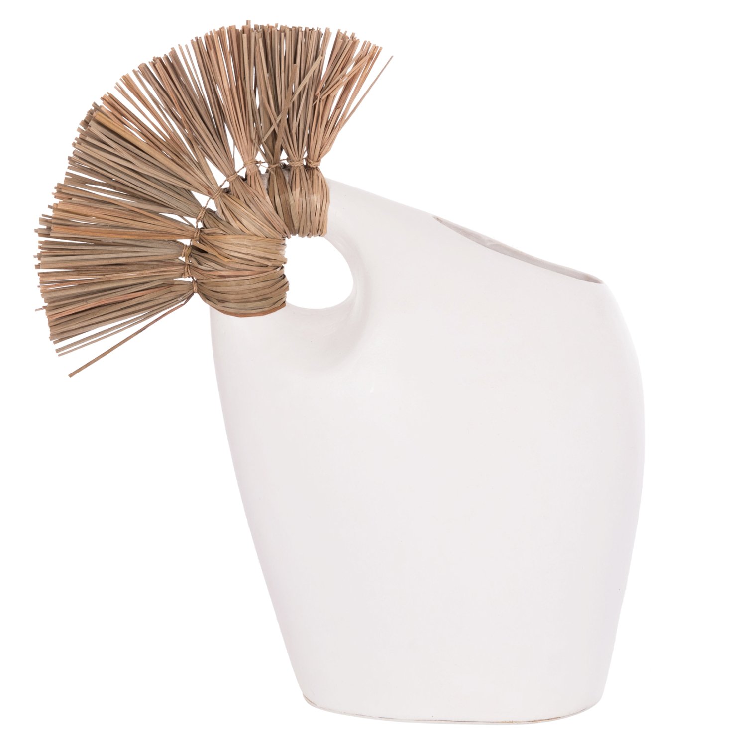 Το επιτραπέζιο χειροποίητο διακοσμητικό βάζο ALICA2 είναι ένα πολύ ιδιαίτερο διακοσμητικό στοιχείο για κάθε χώρο. Είναι κατασκευασμένο εξολοκλήρου από τερακότα σε ΛΕΥΚΟ χρώμα, ενώ διαθέτει και ένα χερούλι επενδυμένο με αποξηραμένο grass, και ένα φαρδύ στόμιο.