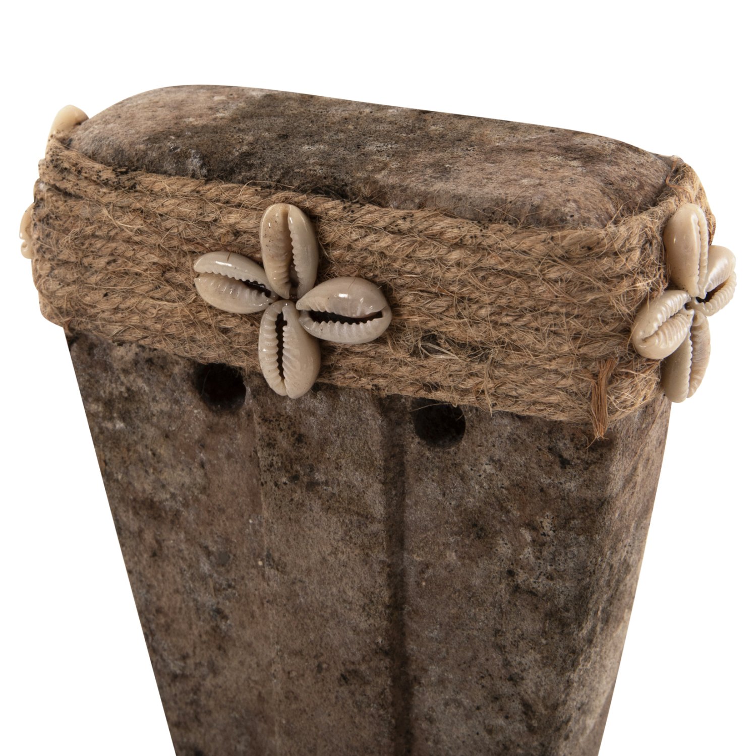 Το επιτραπέζιο διακοσμητικό ΗΜ4315 θα δώσει μια άλλη «αύρα» στον χώρο σας. Πρόκειται για ένα μακρόστενο προσωπείο με κοχύλια και σχοινί, σε ΦΥΣΙΚΗ απόχρωση πέτρας, τοποθετημένο σε ένα ΜΑΥΡΟ μεταλλικό stand. Αυτό που κάνει όμως το ΗΜ4315 να ξεχωρίζει είναι η σημειολογία του. Είναι κατασκευασμένο από PARAS STONE, το οποίο στα ελληνικά αποδίδεται ως «τυχερή πέτρα» και λέγεται ότι φέρνει τύχη στον κάτοχό του. Προέρχεται από την Ινδική μυθολογία στην οποία το PARAS STONE είχε την ιδιότητα να μετατρέπει οποιοδήποτε αντικείμενο σε χρυσό.