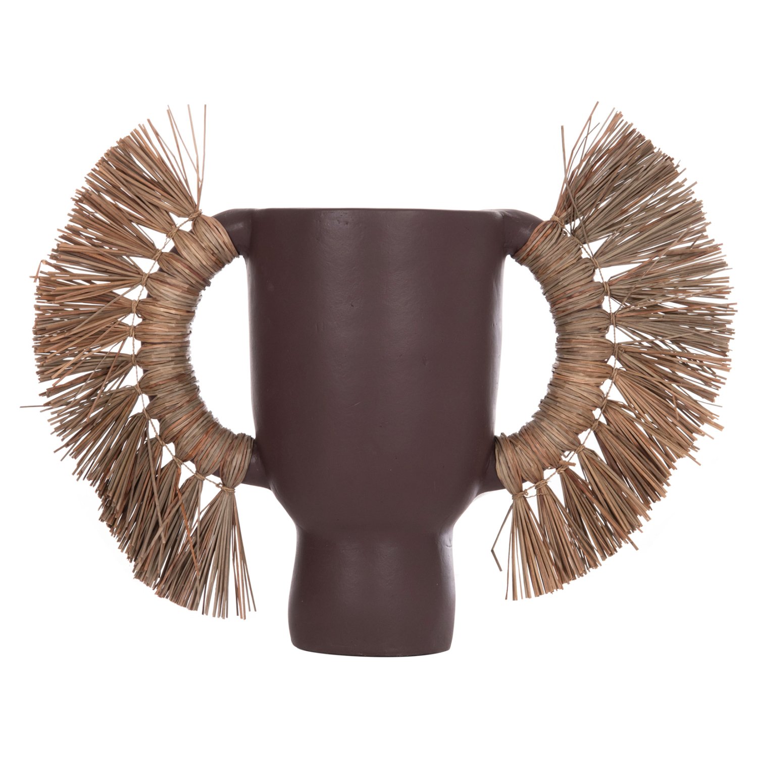 Το επιτραπέζιο χειροποίητο διακοσμητικό βάζο ALICA είναι ένα πολύ ιδιαίτερο διακοσμητικό στοιχείο για κάθε χώρο. Είναι κατασκευασμένο εξολοκλήρου από τερακότα σε ΣΟΚΟΛΑΤΙ χρώμα, ενώ διαθέτει και δύο χερούλια επενδυμένα με αποξηραμένο grass, και ένα φαρδύ στόμιο.
