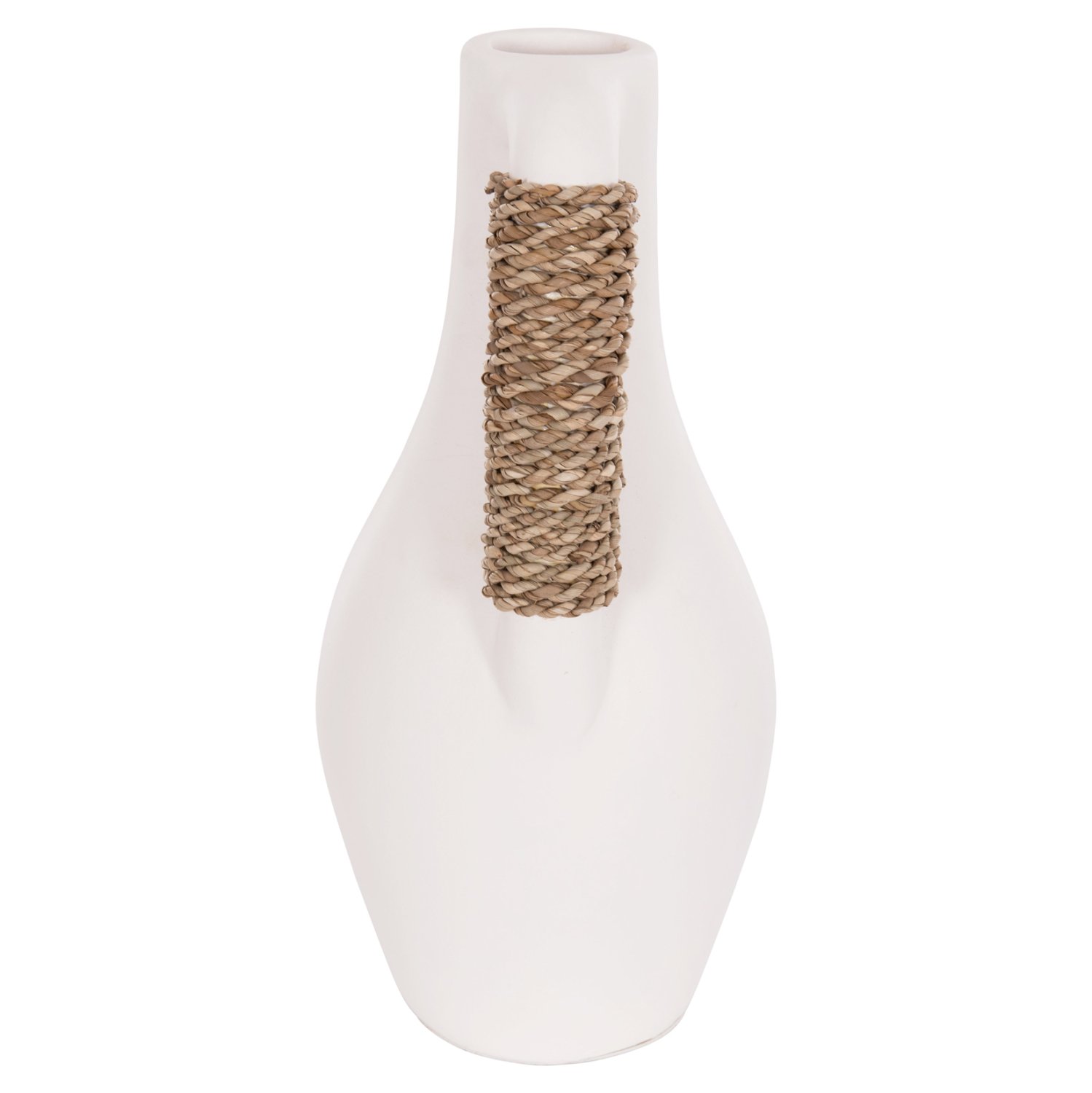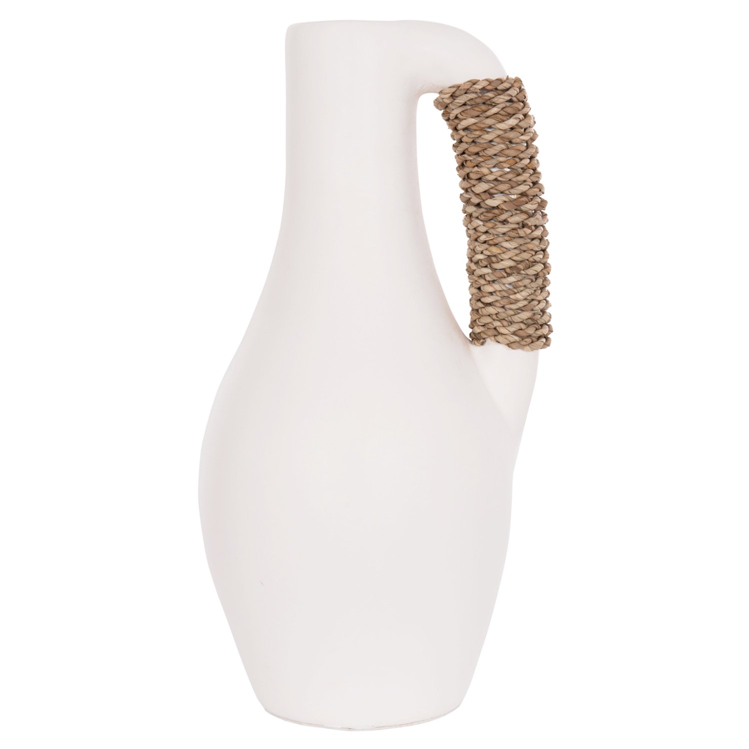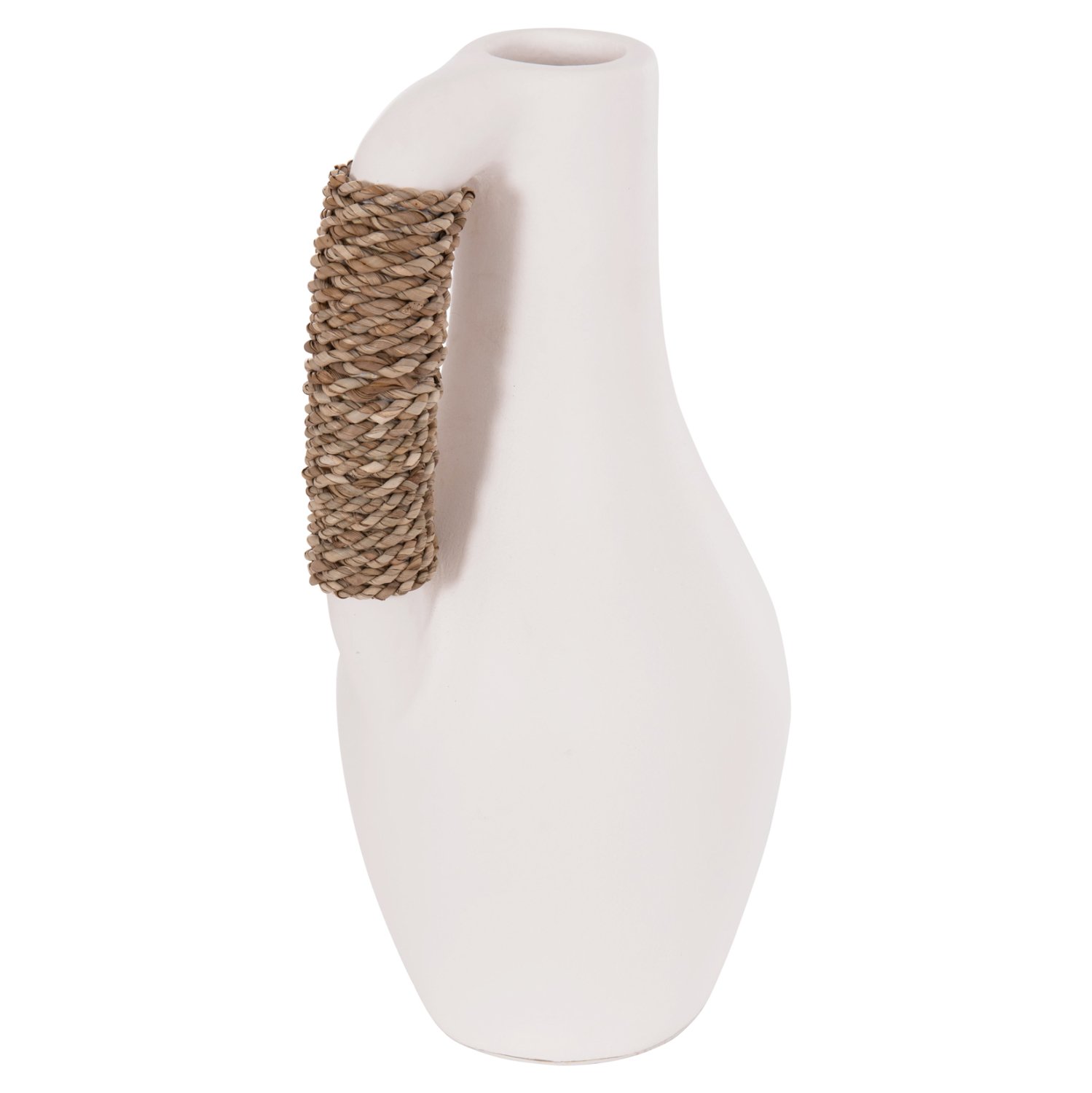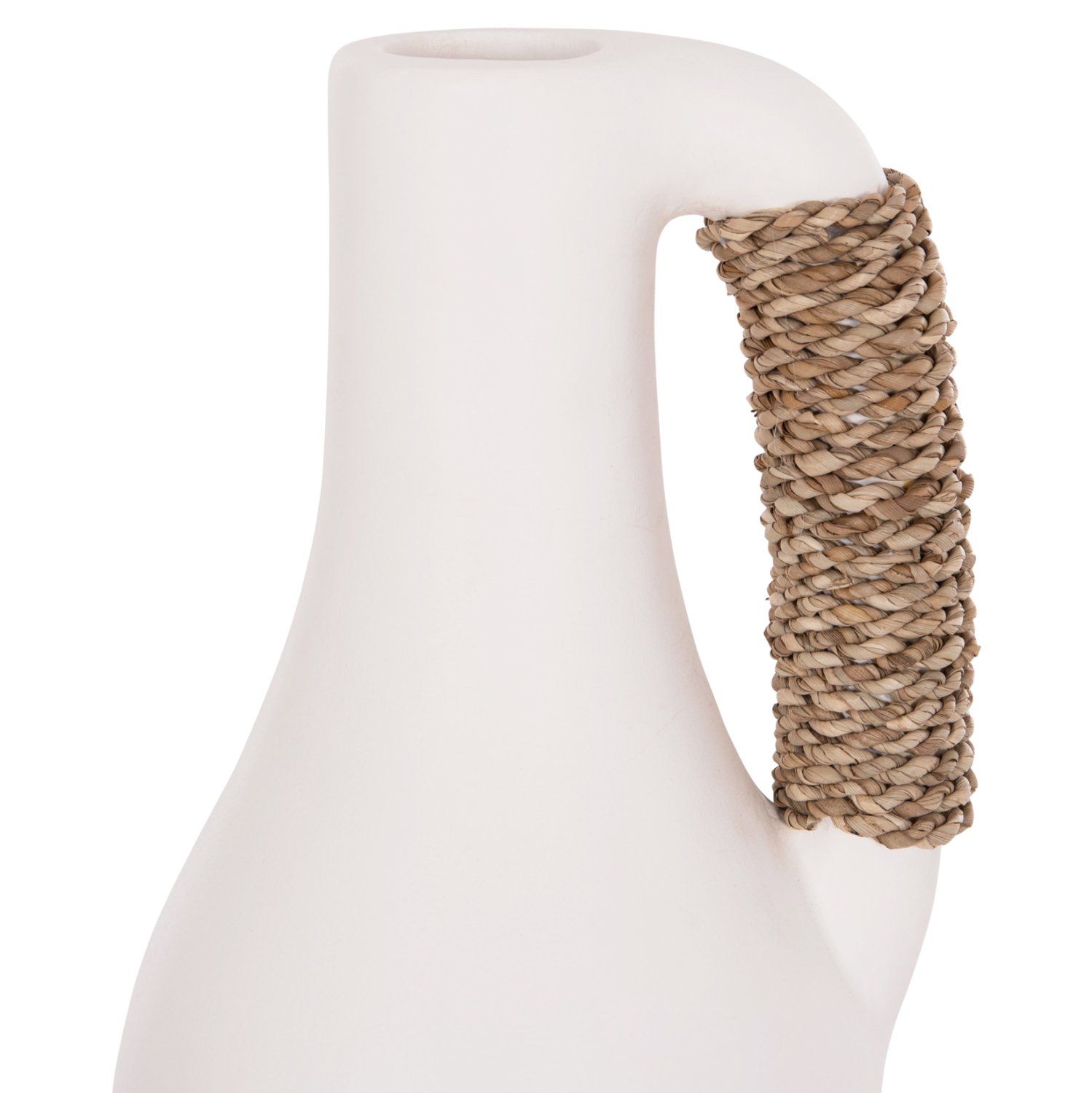 Το επιτραπέζιο χειροποίητο διακοσμητικό βάζο CAMMER είναι κατασκευασμένο εξολοκλήρου από τερακότα σε ΛΕΥΚΟ χρώμα ενώ διαθέτει διακοσμητική πλέξη από seagrass στο χερούλι που διαθέτει. Ιδανικό για πληθώρα χώρων, τόσο για το σπίτι, όσο και για επαγγελματικούς χώρους.