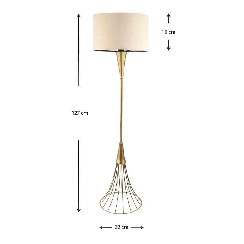 Φωτιστικό δαπέδου Olde Megapap E27 μεταλλικό – υφασμάτινο χρώμα χρυσό – μπεζ 33x33x127εκ.