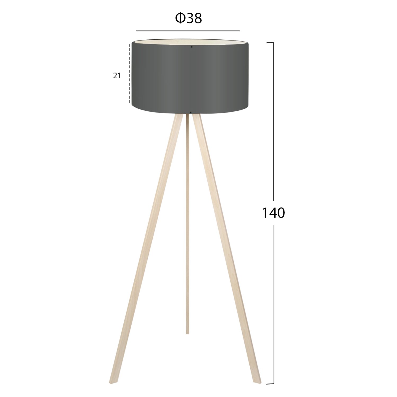 Φωτιστικό δαπέδου με τρίποδο από 100% MDF σε φυσικό χρώμα. Το κυλινδρικό «καπέλο» του φωτιστικού είναι σε σκούρο γκρι χρώμα. Ένα όμορφο φωτιστικό δαπέδου που θα δημιουργήσει την ατμόσφαιρα που πάντα φανταζόσασταν για τον χώρο σας, έτσι ώστε να φτιάξετε την δική σας γωνιά χαλάρωσης ή ακόμα και διακόσμησης. Διότι το φως, σημαίνει κάτι περισσότερο από ένα φωτιστικό. Σημαίνει διακόσμηση, ατμόσφαιρα, τέχνη, μεράκι, και φυσικά επιστήμη.