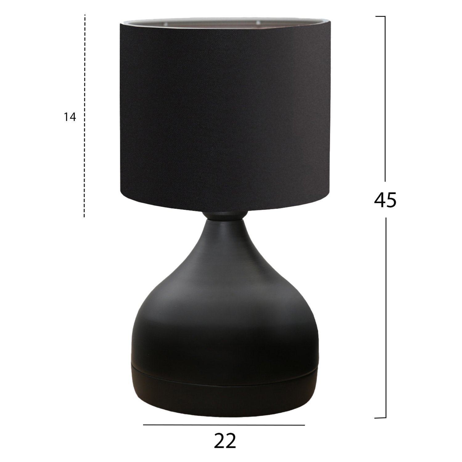 Επιτραπέζιο φωτιστικό σε μαύρο χρώμα με «τύμπανο» επίσης σε μαύρο χρώμα. Ένα όμορφο φωτιστικό που θα δημιουργήσει την ατμόσφαιρα που πάντα φανταζόσασταν για τον χώρο σας. Το υφασμάτινο «τύμπανο» προσφέρει στον χώρο σας στιγμιαία στυλιστική αναβάθμιση. Ειδικά, το μαύρο χρώμα του «τύμπανου» πραγματικά δίνει την εντύπωση της πολυτέλειας χωρίς όριο. Το σώμα του φωτιστικού είναι σε καλαίσθητο σχήμα μισής μπουκάλας και ο συνδυασμός με το «τύμπανο» δημιουργεί μια οικεία εικόνα που θα σας χαλαρώσει μετά από μια έντονη μέρα. Αυτού του είδους τα φωτιστικά δεν προορίζονται για φωτιστικά διαβάσματος και αυτό πρέπει πάντα να λαμβάνεται υπόψη κατά την επιλογή τους. Είναι καθαρά διακοσμητικά και το ταίριασμά τους με τον περιβάλλοντα χώρο θα πρέπει να είναι αρμονικό. Αυτό το φωτιστικό είναι λιτό, κομψό και βολικό σε διαστάσεις παρέχοντας αμέτρητες δυνατότητες «δεσίματος» με την υπόλοιπη διακόσμησή σας. Είναι ένα μικρό έργο τέχνης.