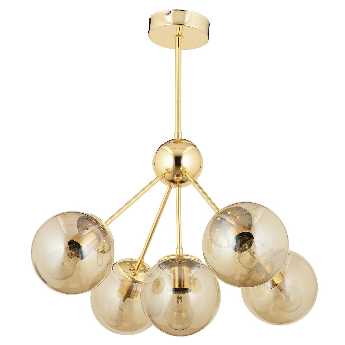 Φωτιστικό κρεμαστό MEY πολύφωτο χρυσό/μελί μέταλλο/γυαλί 59x64cm.