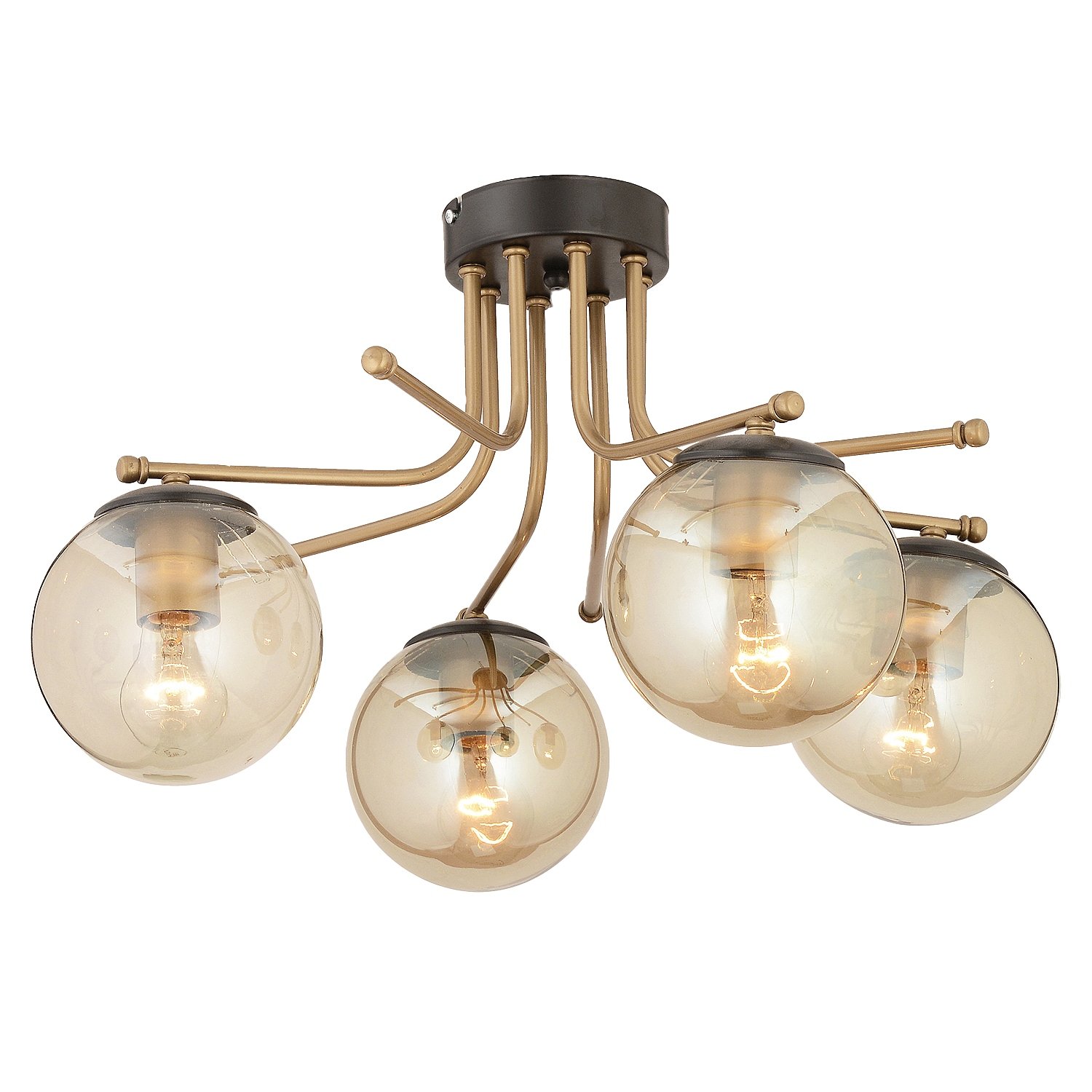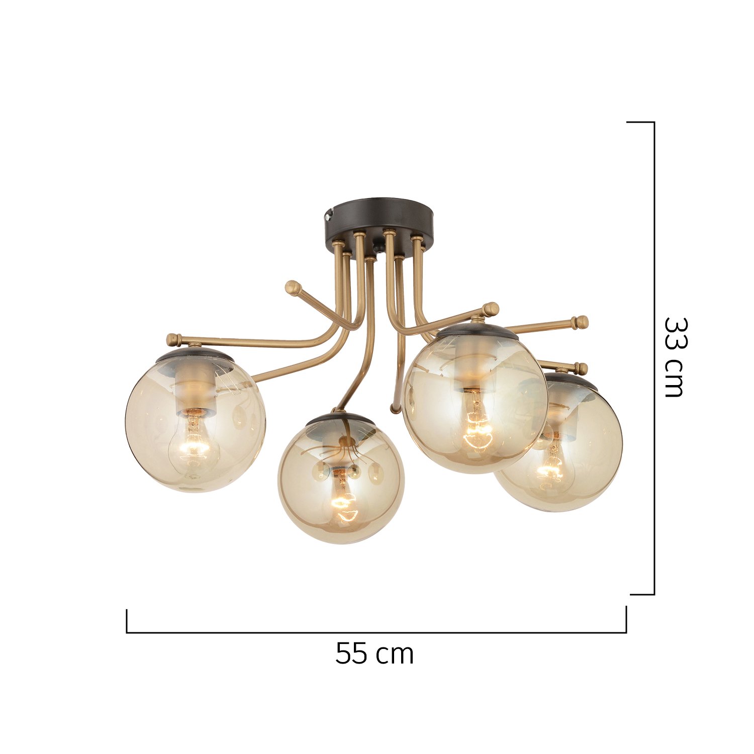 Φωτιστικό οροφής NORMA τετράφωτο χρυσό/μελί μέταλλο/γυαλί 55x33cm.