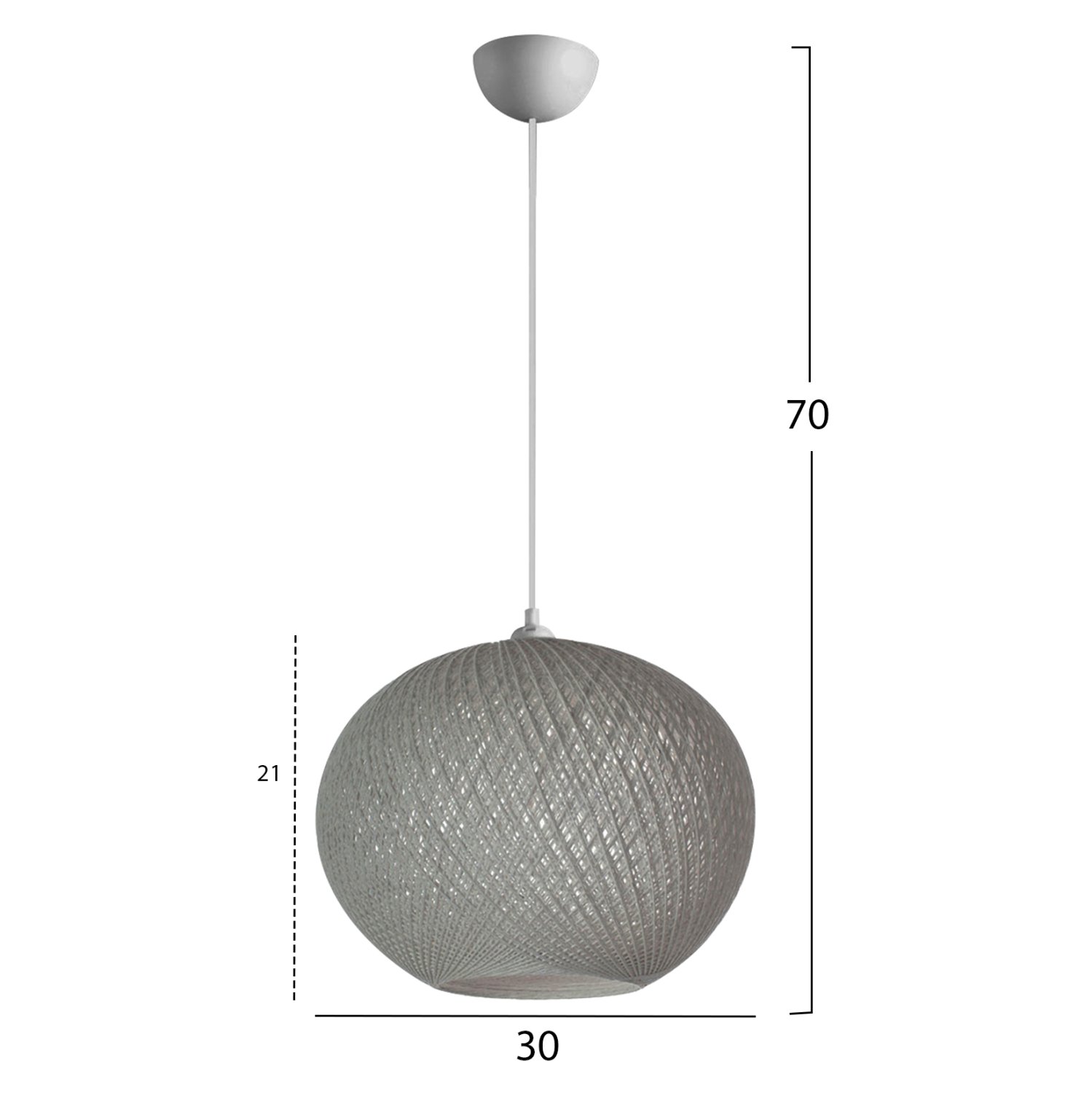 Είναι ένα μονόφωτο φωτιστικό σε σχήμα ελαφρώς ελλειπτικό σφαιρικό και είναι επενδυμένο με λεπτό πλεκτό σκοινί, υψηλής ποιότητας και αντοχής στο χρόνο, σε γκρι απόχρωση.