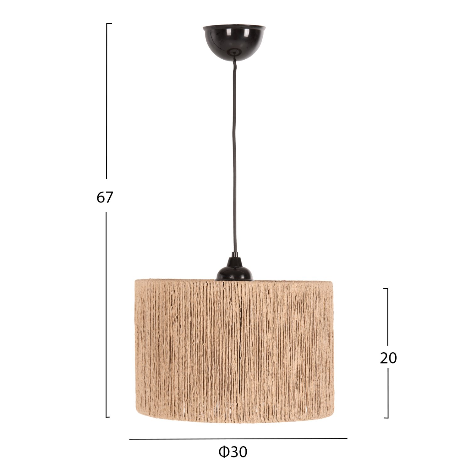 Αφήστε το φως να απλωθεί στον χώρο με ένα πρωτότυπο και φινετσάτο χειροποίητο μονόφωτο οροφής, ολοκληρώνοντας την διακόσμησή σας. Το κυλινδρικό «καπέλο» του φωτιστικού αποτελείται από μεταλλικό σκελετό επενδυμένο με επεξεργασμένο στρογγυλό paper rope σε ΦΥΣΙΚΟ χρώμα ειδικό για φωτιστικά, και είναι η επιτομή του μοντέρνου design.
