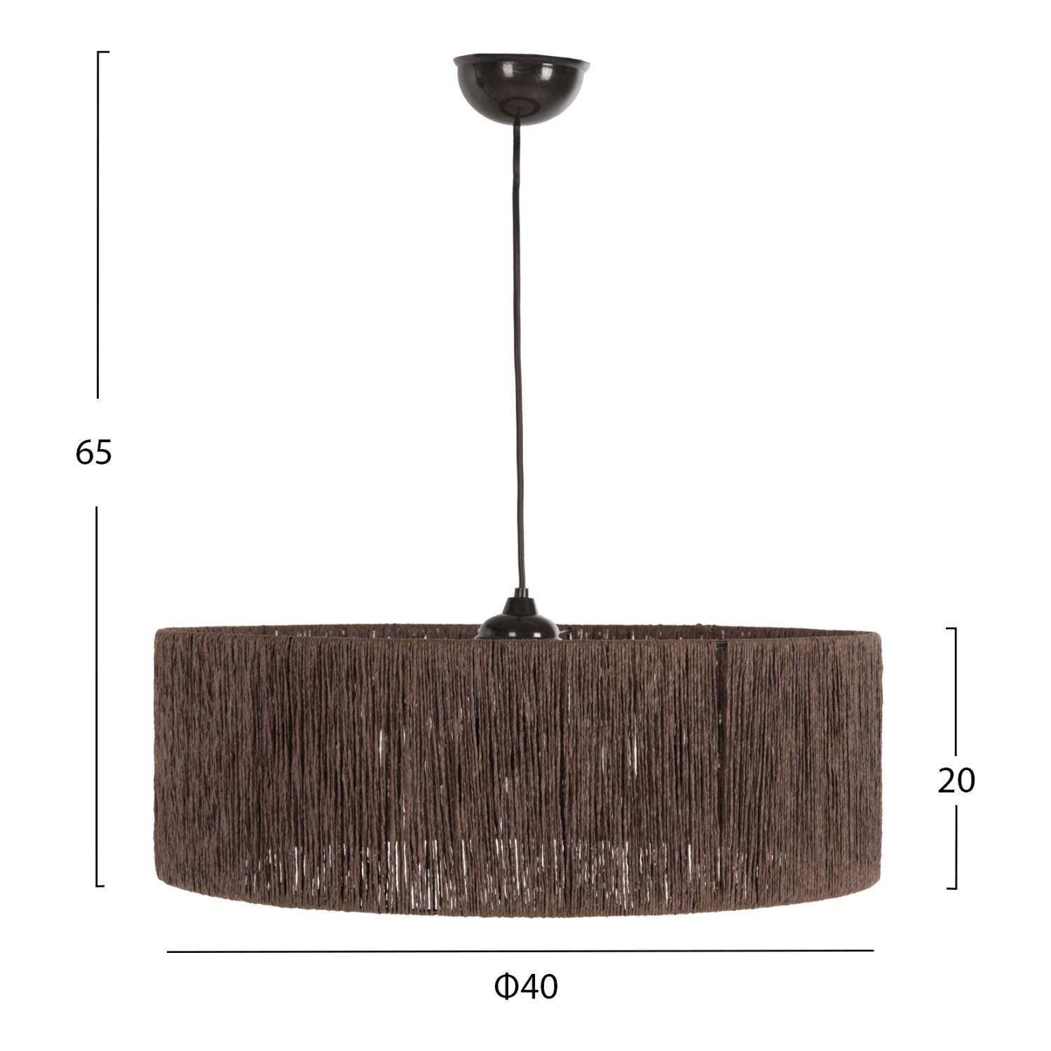 Αφήστε το φως να απλωθεί στον χώρο με ένα πρωτότυπο και φινετσάτο χειροποίητο μονόφωτο οροφής, ολοκληρώνοντας την διακόσμησή σας. Το κυλινδρικό «καπέλο» του φωτιστικού αποτελείται από μεταλλικό σκελετό επενδυμένο με επεξεργασμένο στρογγυλό paper rope σε ΚΑΦΕ χρώμα ειδικό για φωτιστικά, και είναι η επιτομή του μοντέρνου design.