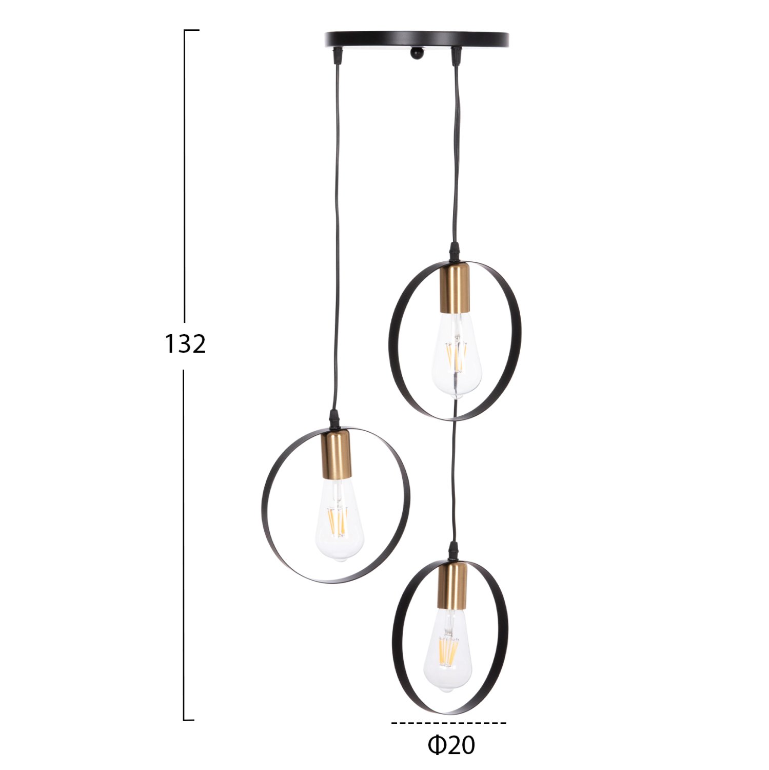 ΦΩΤΙΣΤΙΚΟ ΟΡΟΦΗΣ ΚΡΕΜΑΣΤΟ 3-ΦΩΤΟ KRENT HM7426.11 ΜΑΥΡΟ-ΧΡΥΣΟ Φ23,5×132Υεκ.