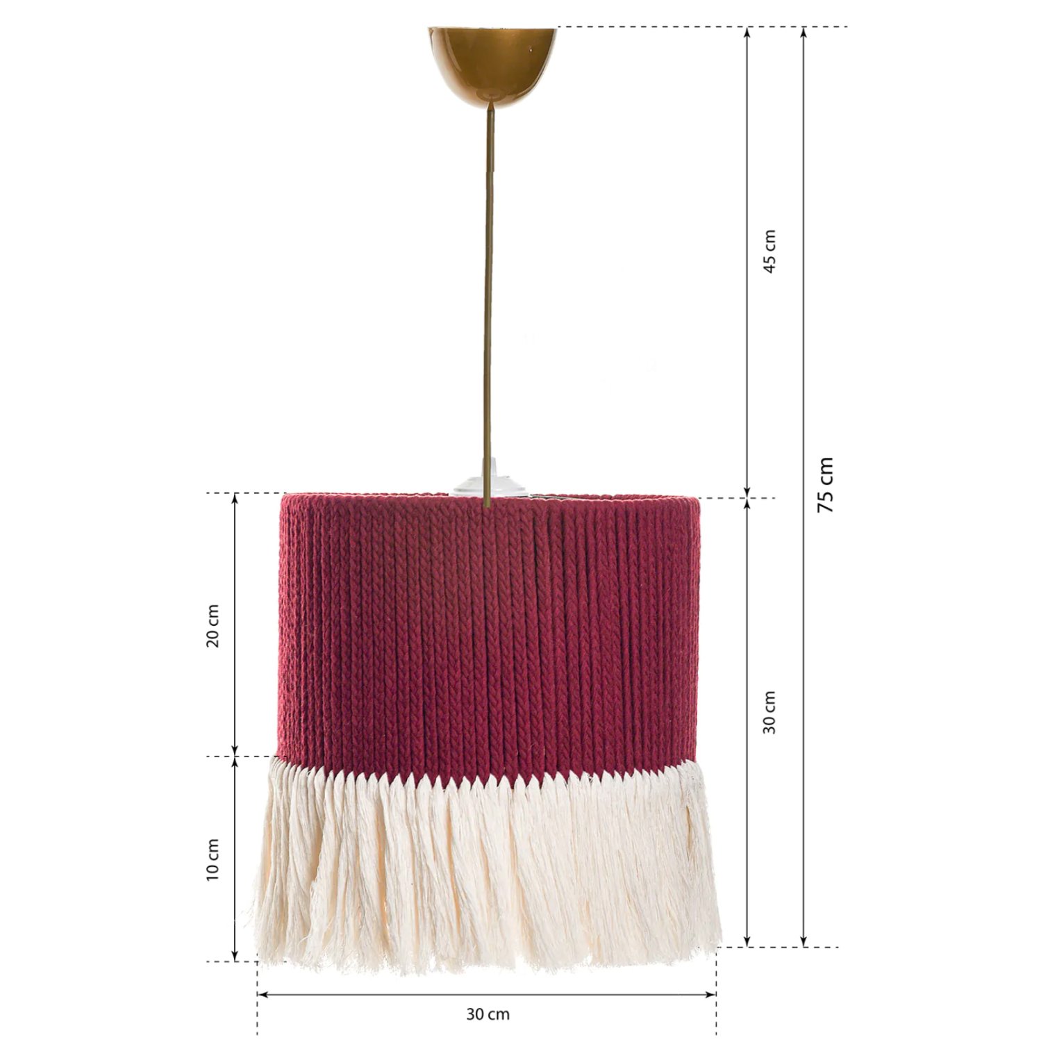 Η αισθητική υπεροχή αυτού του φωτιστικού θα το κάνει να ξεχωρίζει στον χώρο σας. Εκτός από διάφορα δωμάτια του σπιτιού σας, μπορεί, επίσης, να ταιριάξει και σε επαγγελματικούς χώρους όπως εστιατόρια, καφέ, ξενοδοχεία κτλ. Το ΜΠΟΡΝΤΟ χρώμα σε συνδυασμό με το ΛΕΥΚΟ κρόσι, αιχμαλωτίζει τα βλέμματα, και μπορεί να αλλάξει άμεσα την διάθεση σας. Το φως διαχέεται όμορφα στον χώρο τόσο διαμέσου της πλέξης του κυλινδρικού «καπέλου», όσο κυρίως προς τα κάτω. Ταυτόχρονα μπορεί να συνδυαστεί με πολλά άλλα υλικά και σχέδια για να αναδείξει πλήρως τις αισθητικές αρετές του φωτιστικού, μιας και το σχοινί είναι ιδανικό για τη σύνθεση κομψών χώρων διαβίωσης, με άπειρους συνδυασμούς με ασυνήθιστες πινελιές.