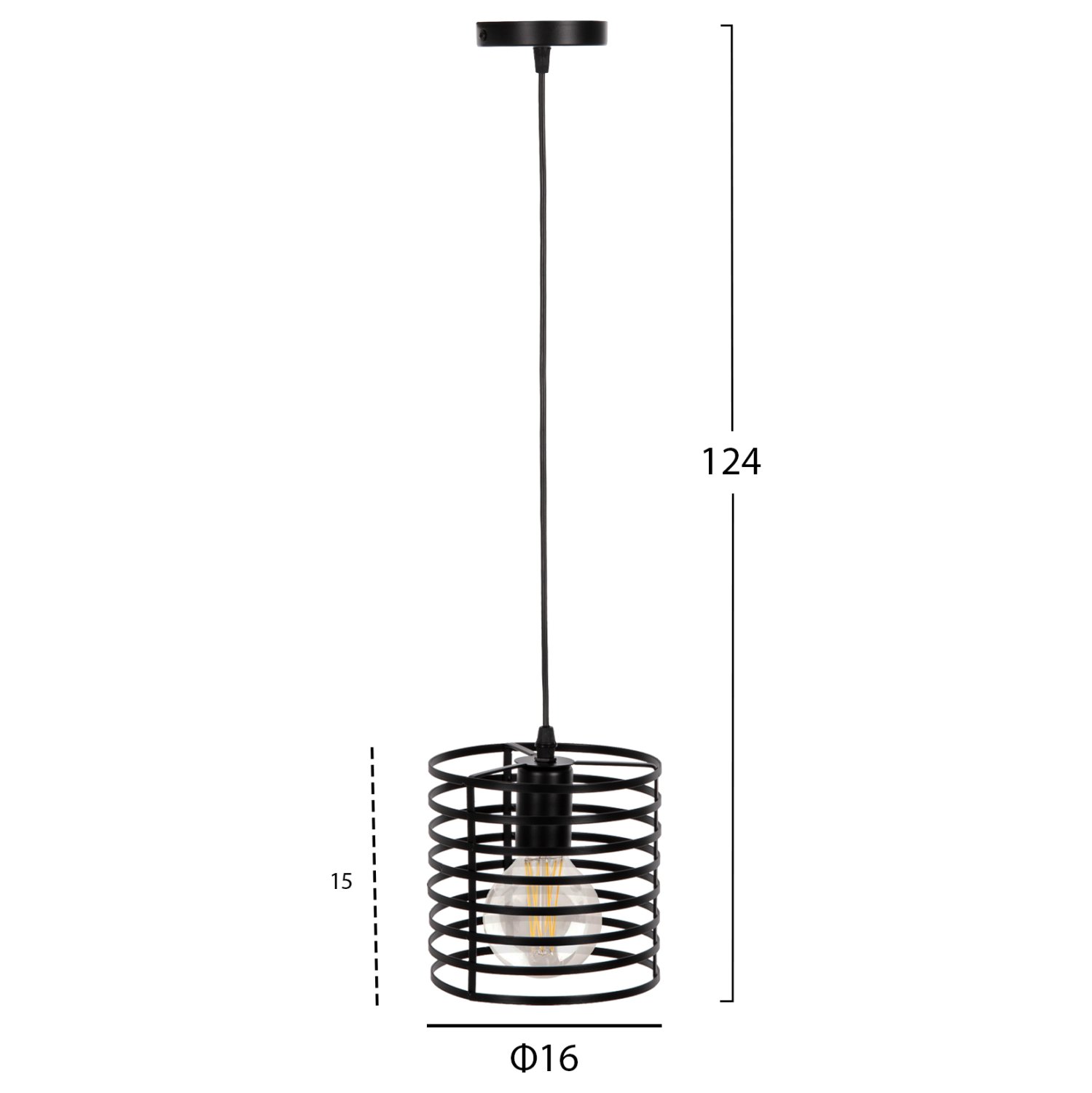ΦΩΤΙΣΤΙΚΟ ΟΡΟΦΗΣ ΚΡΕΜΑΣΤΟ HM4090 ΜΑΥΡΟ ΚΥΛΙΝΔΡΙΚΟ ΜΕΤΑΛΛΙΚΟ ΚΑΠΕΛΟ Φ16x124Yεκ.