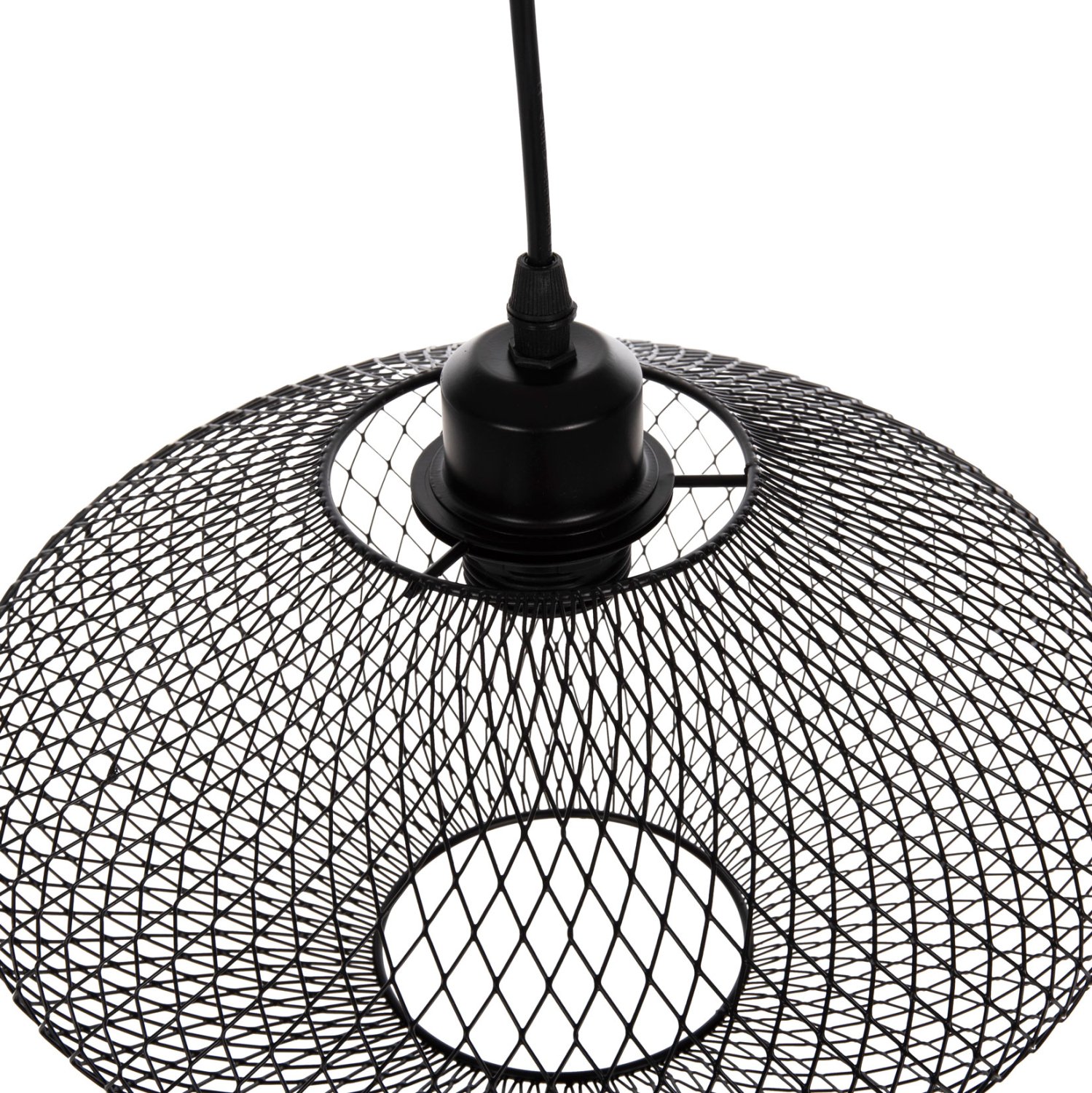 Ανακαλύψτε αυτό το νέο μας κρεμαστό φωτιστικό οροφής και ολοκληρώστε την διακόσμησή σας. Πρόκειται για ένα φωτιστικό με ΜΑΥΡΟ μεταλλικό δικτυωτό καπέλο σε σχήμα οβάλ και αποτελεί την τελευταία τάση στα φωτιστικά οροφής.