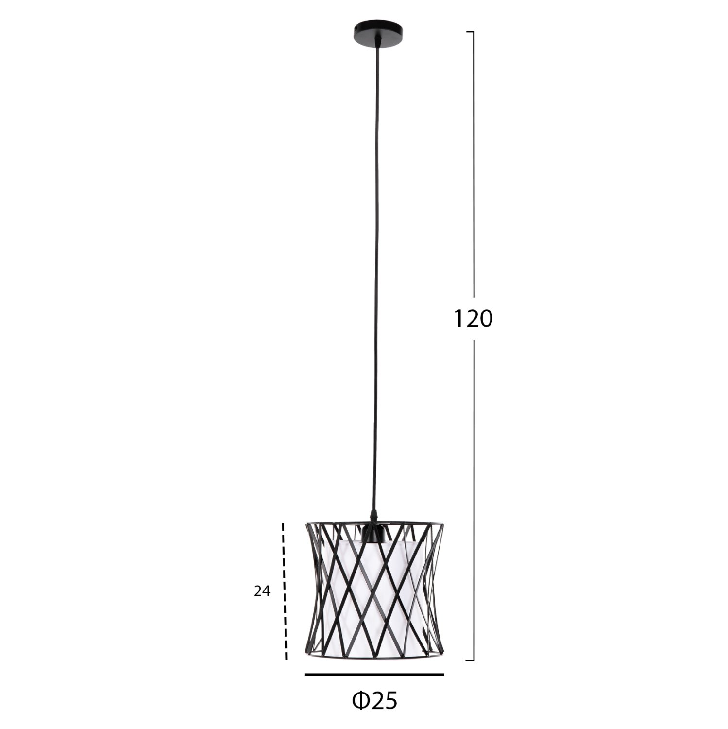 ΦΩΤΙΣΤΙΚΟ ΟΡΟΦΗΣ ΚΡΕΜΑΣΤΟ HM4106 ΜΑΥΡΟ ΜΕΤΑΛΛΟ-ΛΕΥΚΟ ΣΥΝΘΕΤΙΚΟ ΥΦΑΣΜΑ Φ25×120Υεκ.