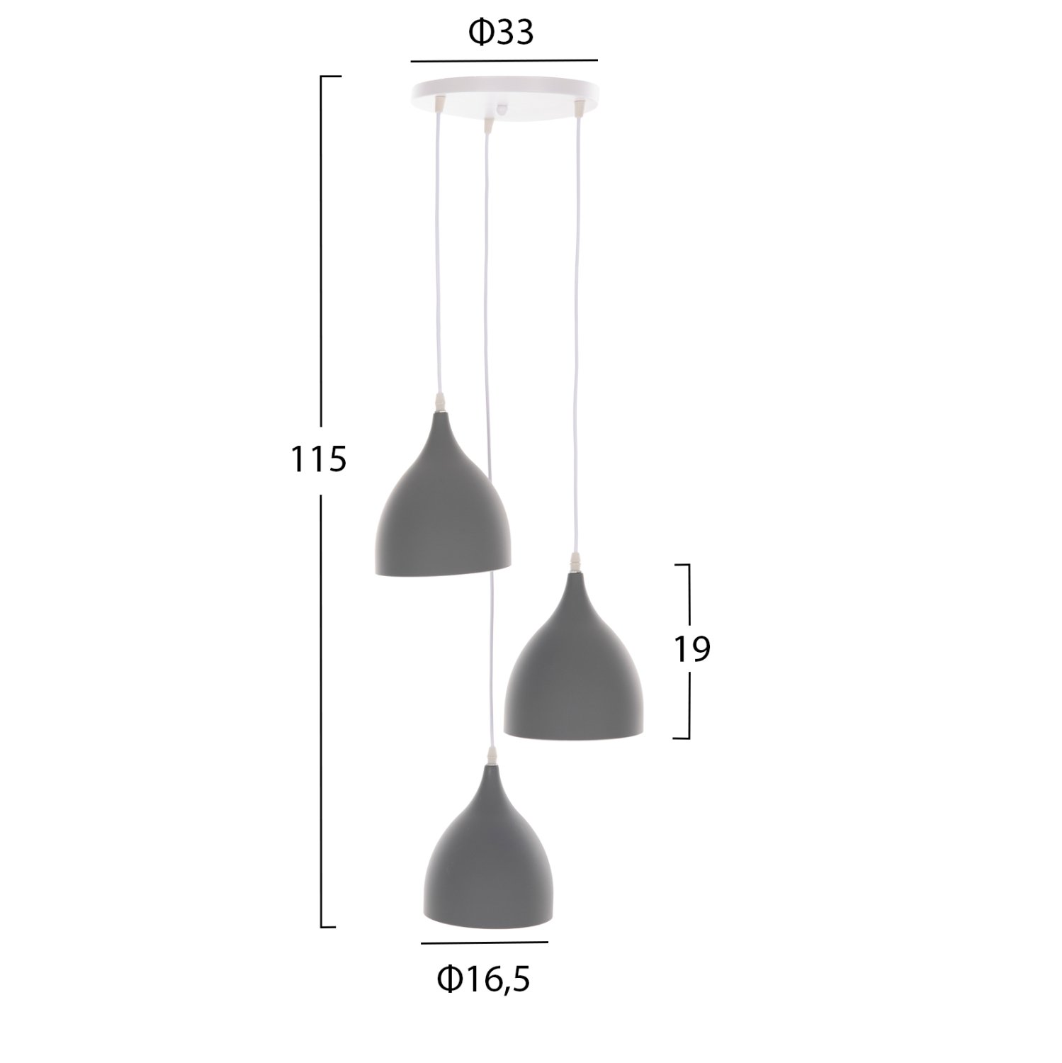 Ανακαλύψτε το νέο μας 3-φωτο κρεμαστό φωτιστικό οροφής, και μην διστάσετε να το εντάξετε στην διακόσμησή σας. Το ουδέτερο ΓΚΡΙ μέταλλο όλου του φωτιστικού και τα 3 φώτα σε διαφορετικά ύψη θα δώσουν μια φρέσκια εικόνα και αίσθηση στον χώρο. Ιδανικό τόσο για το σπίτι, όσο και για επαγγελματικούς χώρους.