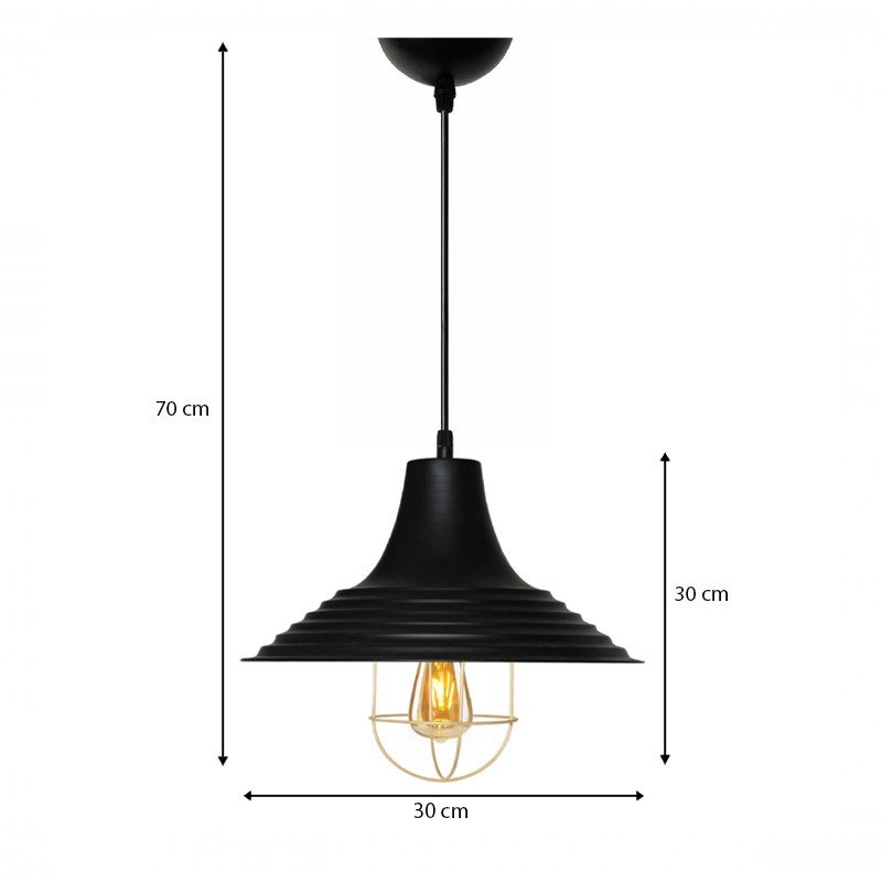 Φωτιστικό οροφής Retro Megapap E27 μεταλλικό μονόφωτο χρώμα μαύρο Φ30×70εκ.