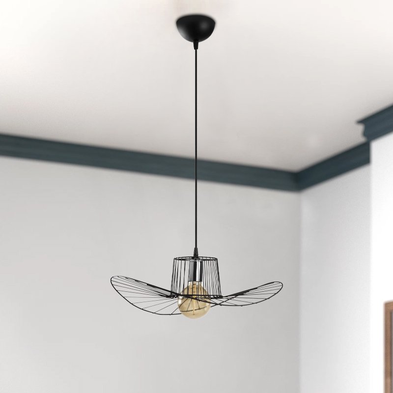 Φωτιστικό οροφής Tel Megapap E27 μεταλλικό μονόφωτο χρώμα μαύρο Φ49×110εκ.
