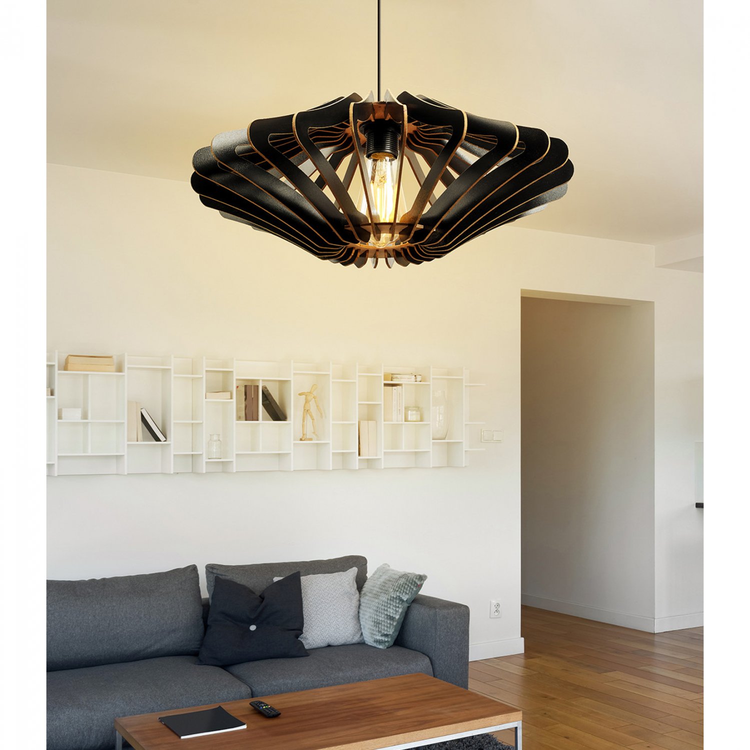 ΦΩΤΙΣΤΙΚΟ ΟΡΟΦΗΣ ΞΥΛΙΝΟ ΚΡΕΜΑΣΤΟ ΜΑΥΡΟ HM7351.03 Φ47×55Υ εκ.
