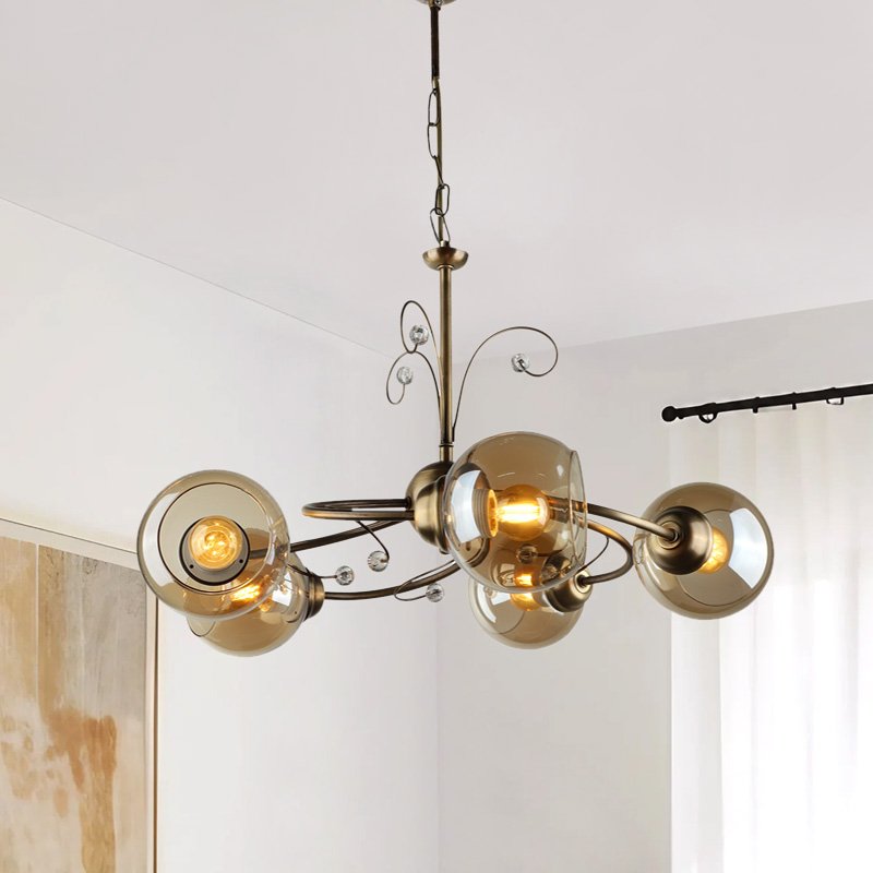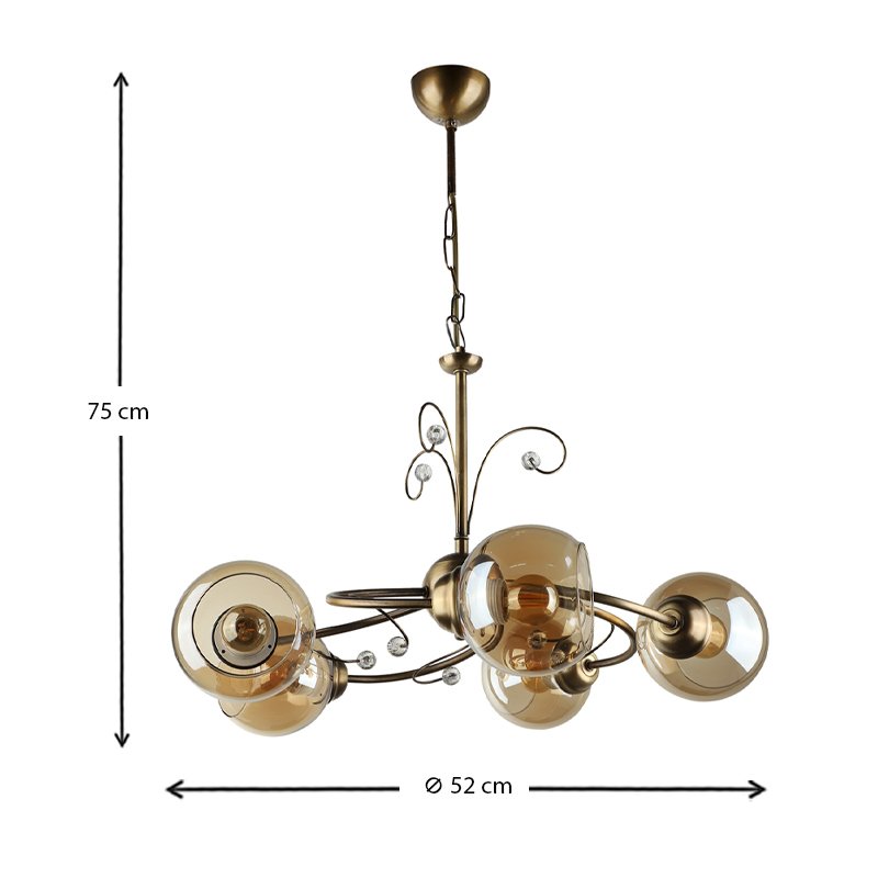 Φωτιστικό οροφής Zara Megapap E27 μεταλλικό πεντάφωτο χρώμα μπρονζέ Φ52×75εκ.