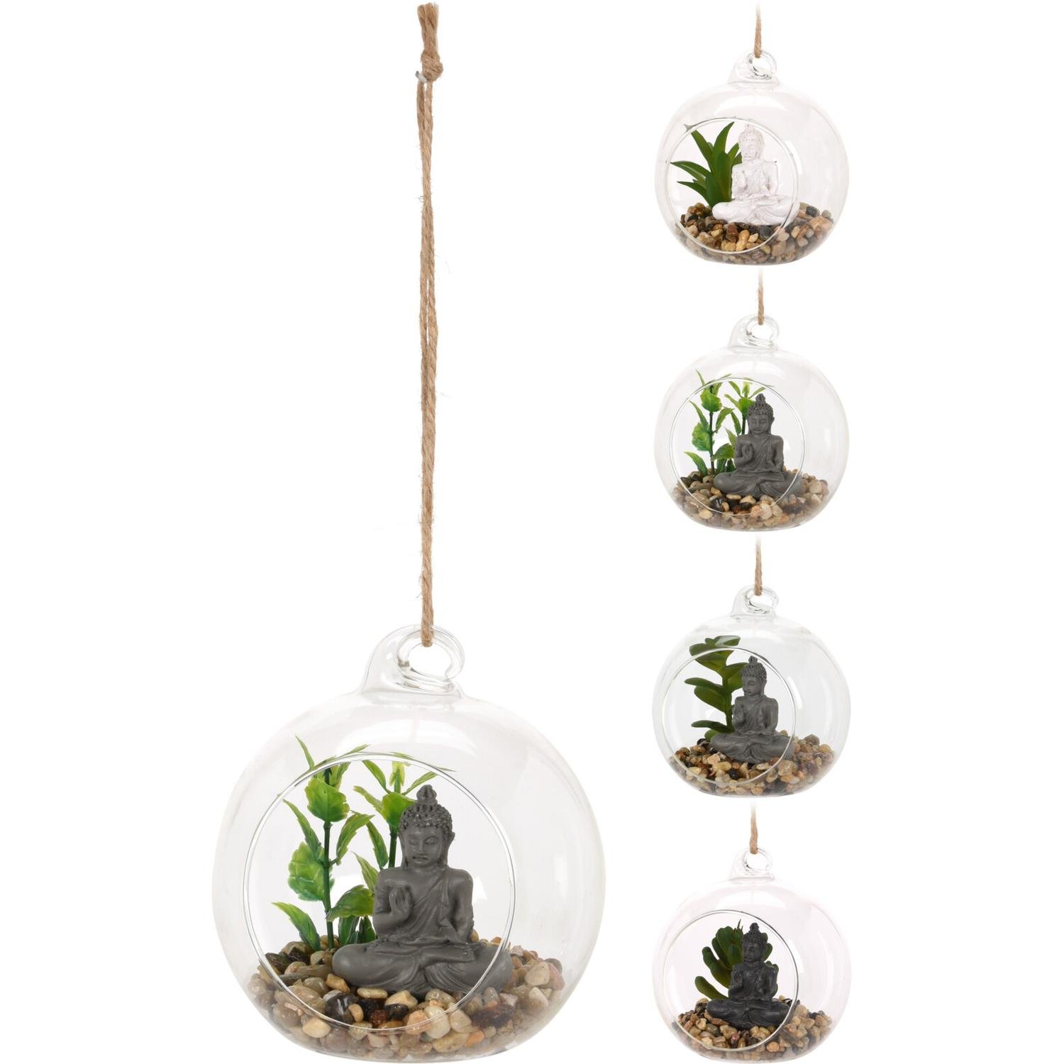 Φυτό τεχνητό κρεμαστό σε μπάλα με βούδα γυαλί σε 4 σχέδια.