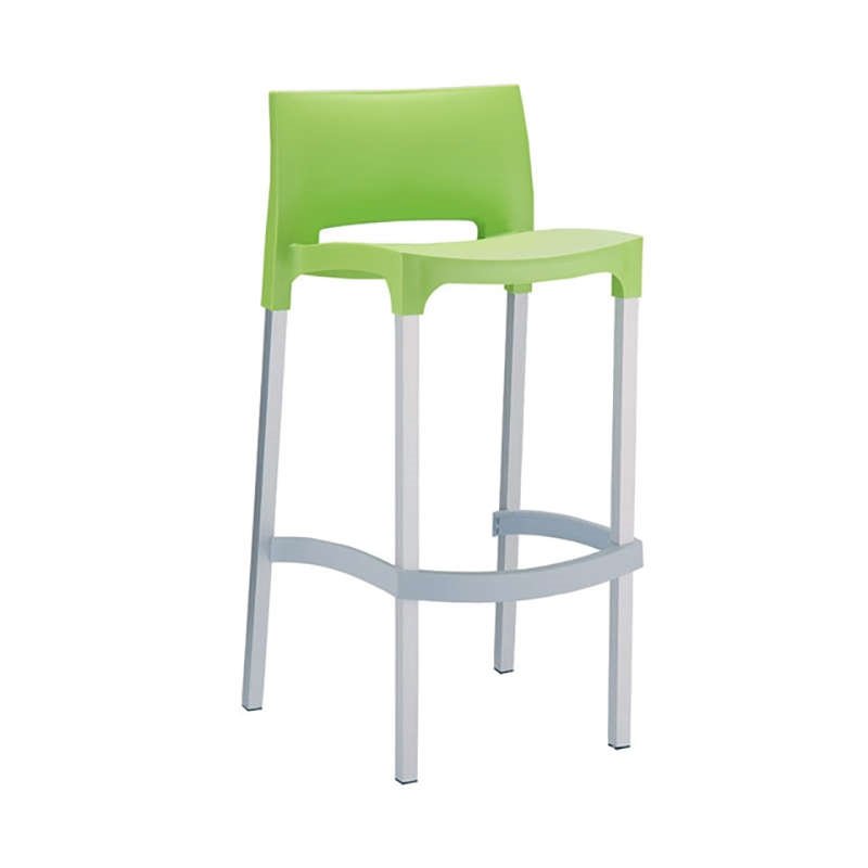 Gio σκαμπό του οίκου Siesta σε χρώμα light green,κατασκευασμένο από πολυπροπυλένιο ενισχυμένο με 20% fiber glass και πόδια από ανοδειωμένο αλουμίνιο 25x25mm,για απόλυτη αντοχή στον χρόνο.Κατάλληλο για εσωτερική και εξωτερική χρήση,στοιβαζόμενο. Ιδανικό για επαγγελματική χρήση.