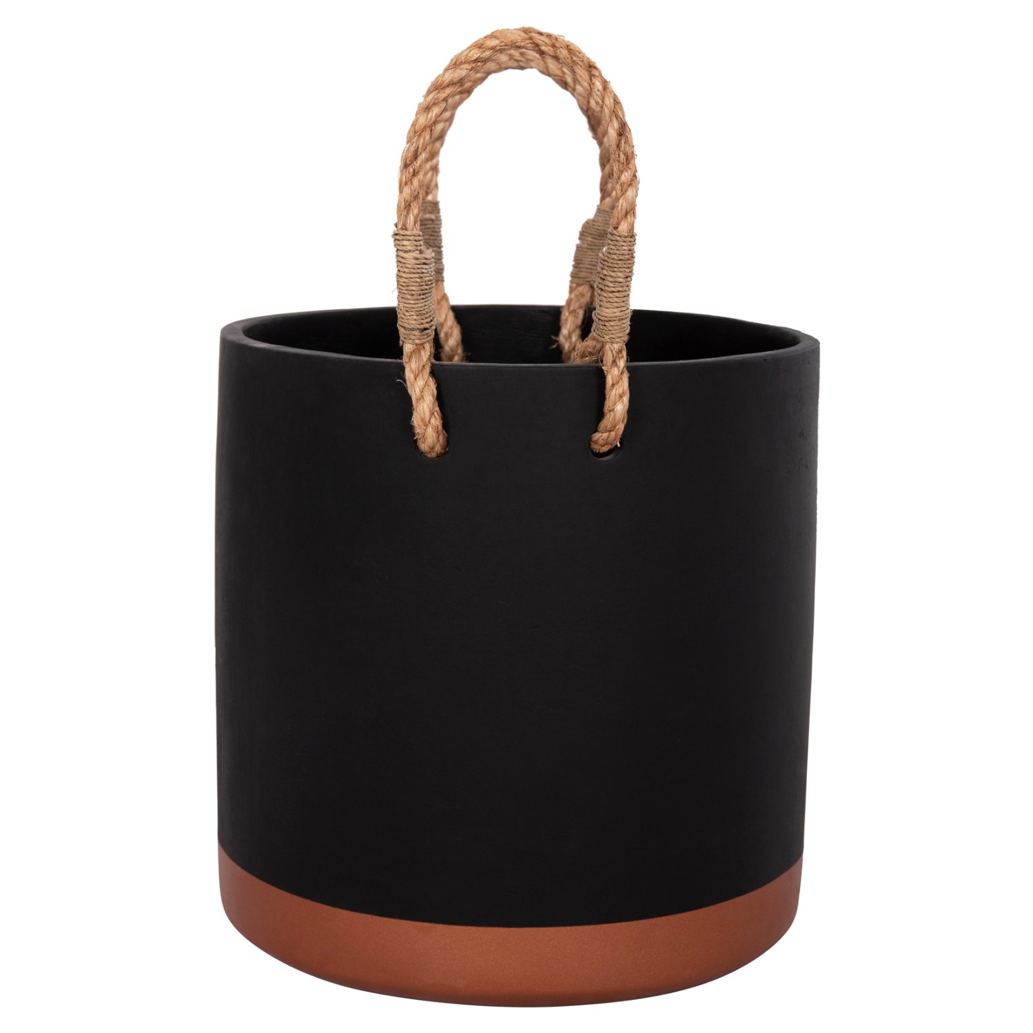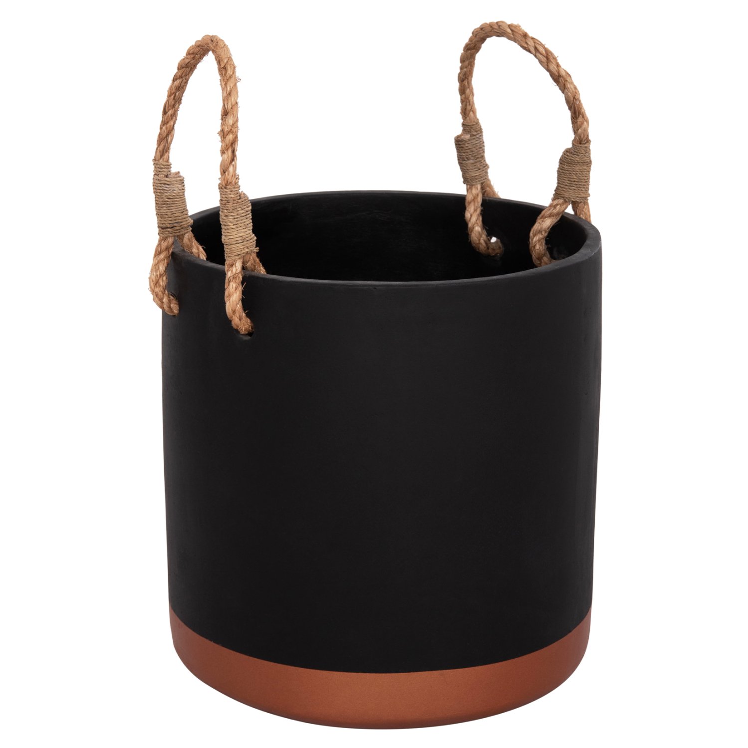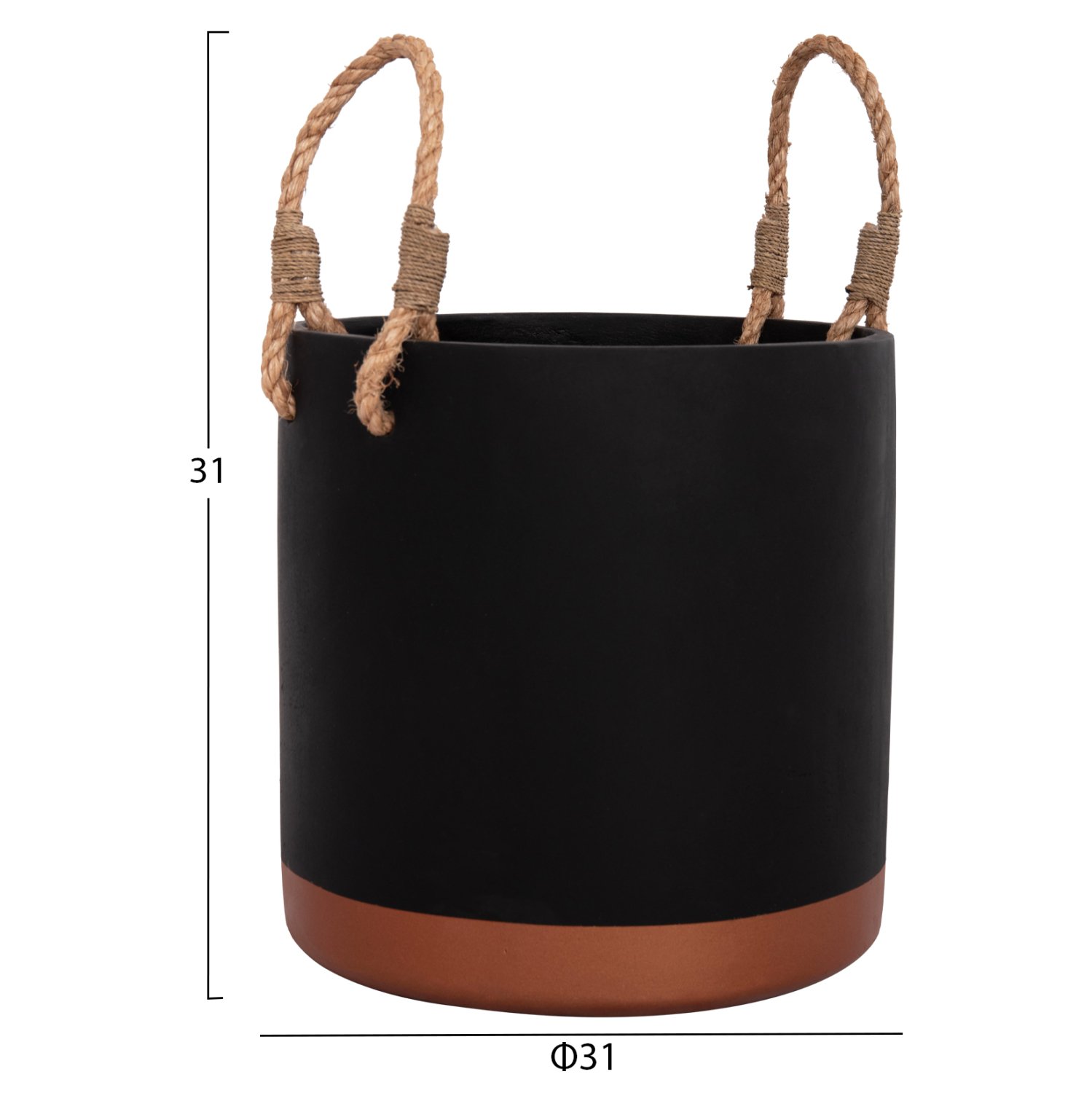 Η γλάστρα της σειράς TRYLL είναι κατασκευασμένη από Fiber Cement σε ΜΑΥΡΟ χρώμα με ΜΠΡΟΝΖΕ περίγραμμα βάσης. Το ιδιαίτερο χαρακτηριστικό της είναι ότι διαθέτουν χερούλια από ανθεκτικό σχοινί για εύκολη μεταφορά. Συνιστάται η τοποθέτηση εσωτερικού δοχείου εάν πρόκειται να την χρησιμοποιήσετε με νερό!