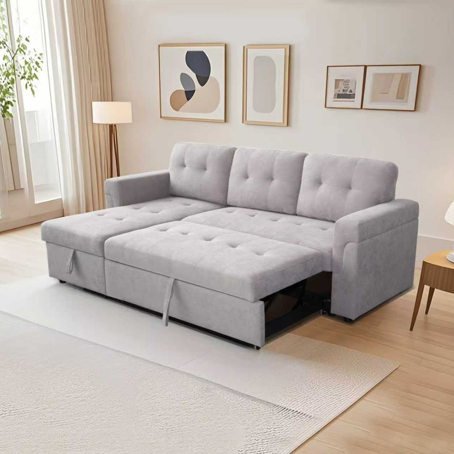 ΓΩΝΙΑΚΟΣ ΚΑΝΑΠΕΣ-ΚΡΕΒΑΤΙ ΑΝΑΣΤΡΕΨΙΜΟΣ SAL HM3310.01 ΓΚΡΙ ΥΦΑΣΜΑ 214x137x83Yεκ