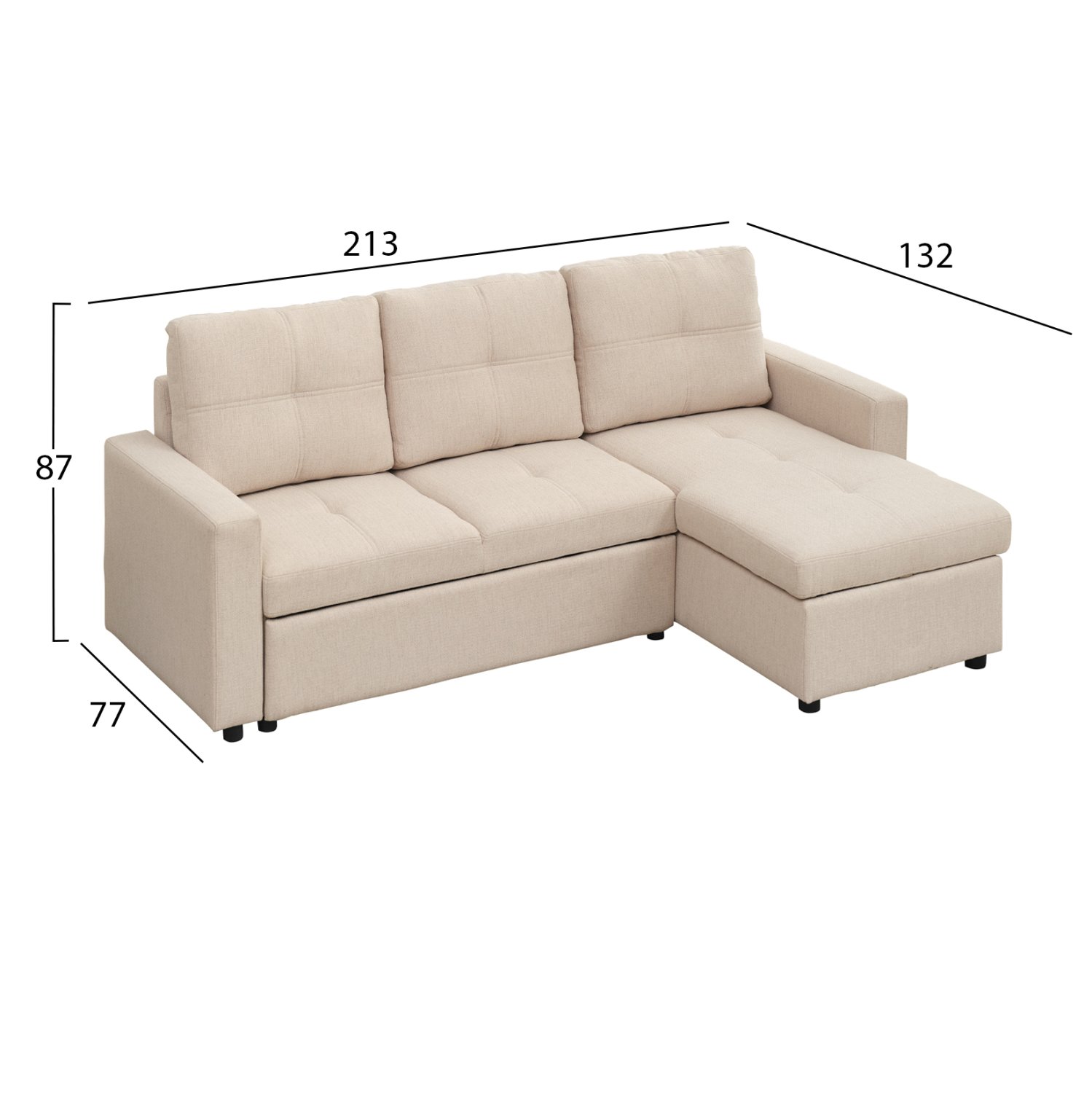 ΓΩΝΙΑΚΟΣ ΚΑΝΑΠΕΣ-ΚΡΕΒΑΤΙ ΑΝΑΣΤΡΕΨΙΜΟΣ SALINO HM3285.03 ΜΠΕΖ ΥΦΑΣΜΑ 213x132x87Yεκ