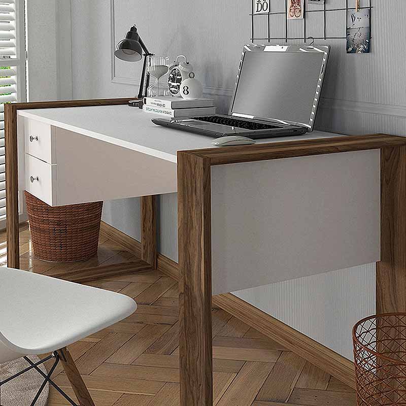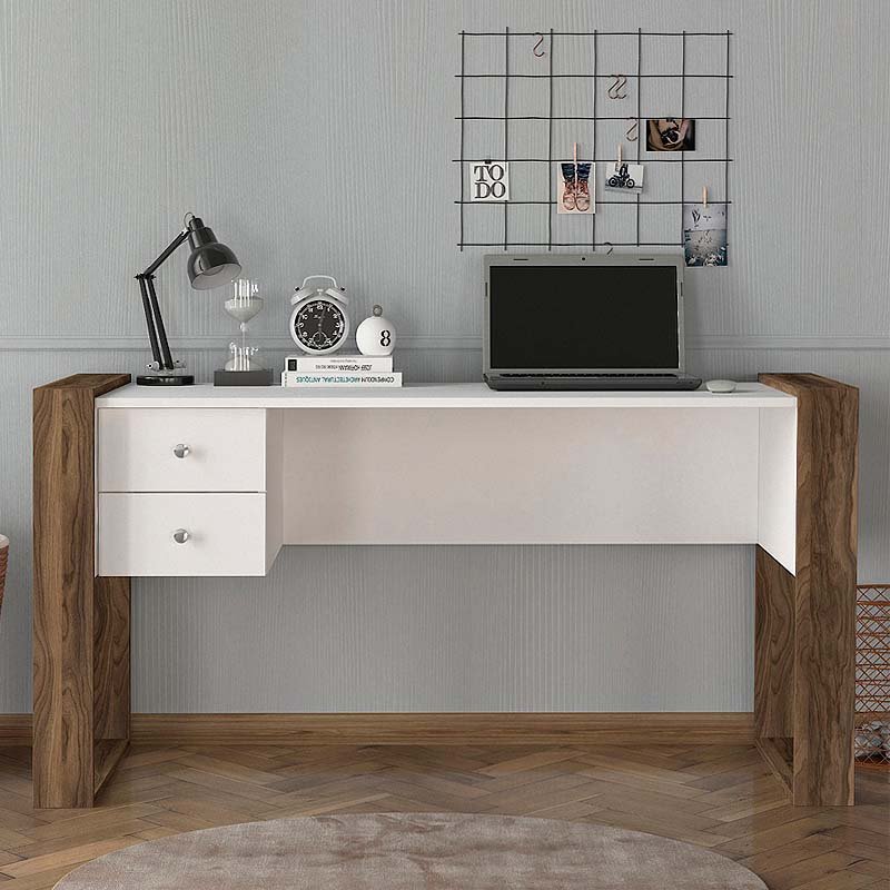 Γραφείο εργασίας Fernando Megapap από μελαμίνη χρώμα λευκό – καρυδί 158,4x60x72,2εκ.