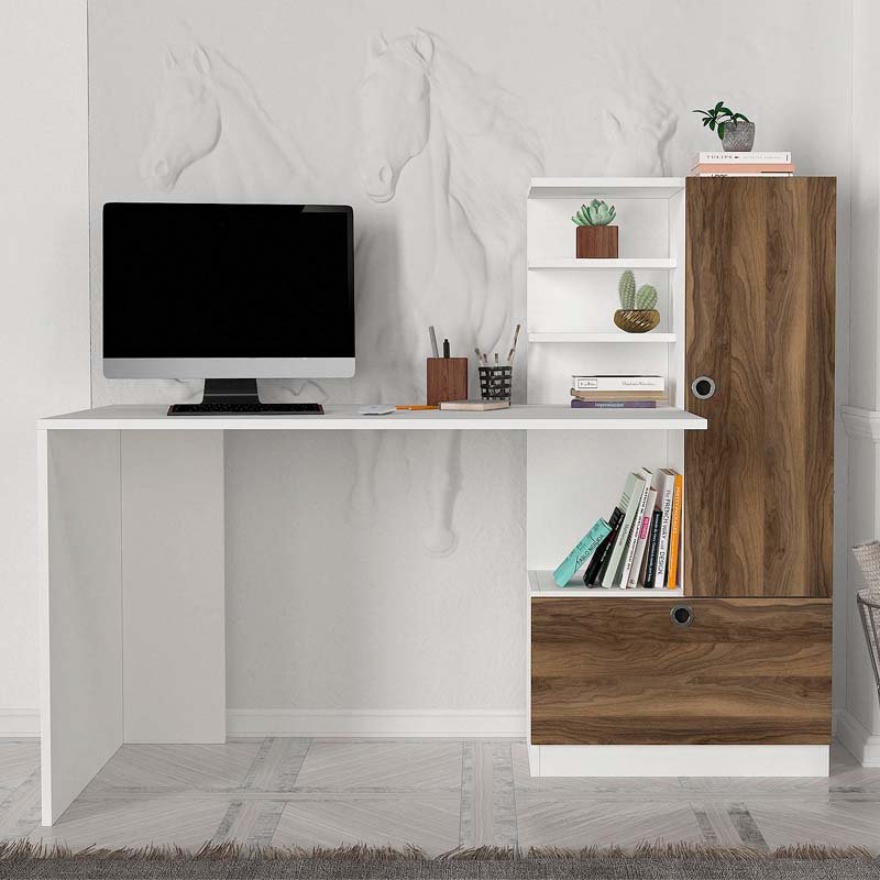 Γραφείο εργασίας Merino Megapap από μελαμίνη χρώμα λευκό – καρυδί 149,5×61,8×120εκ.