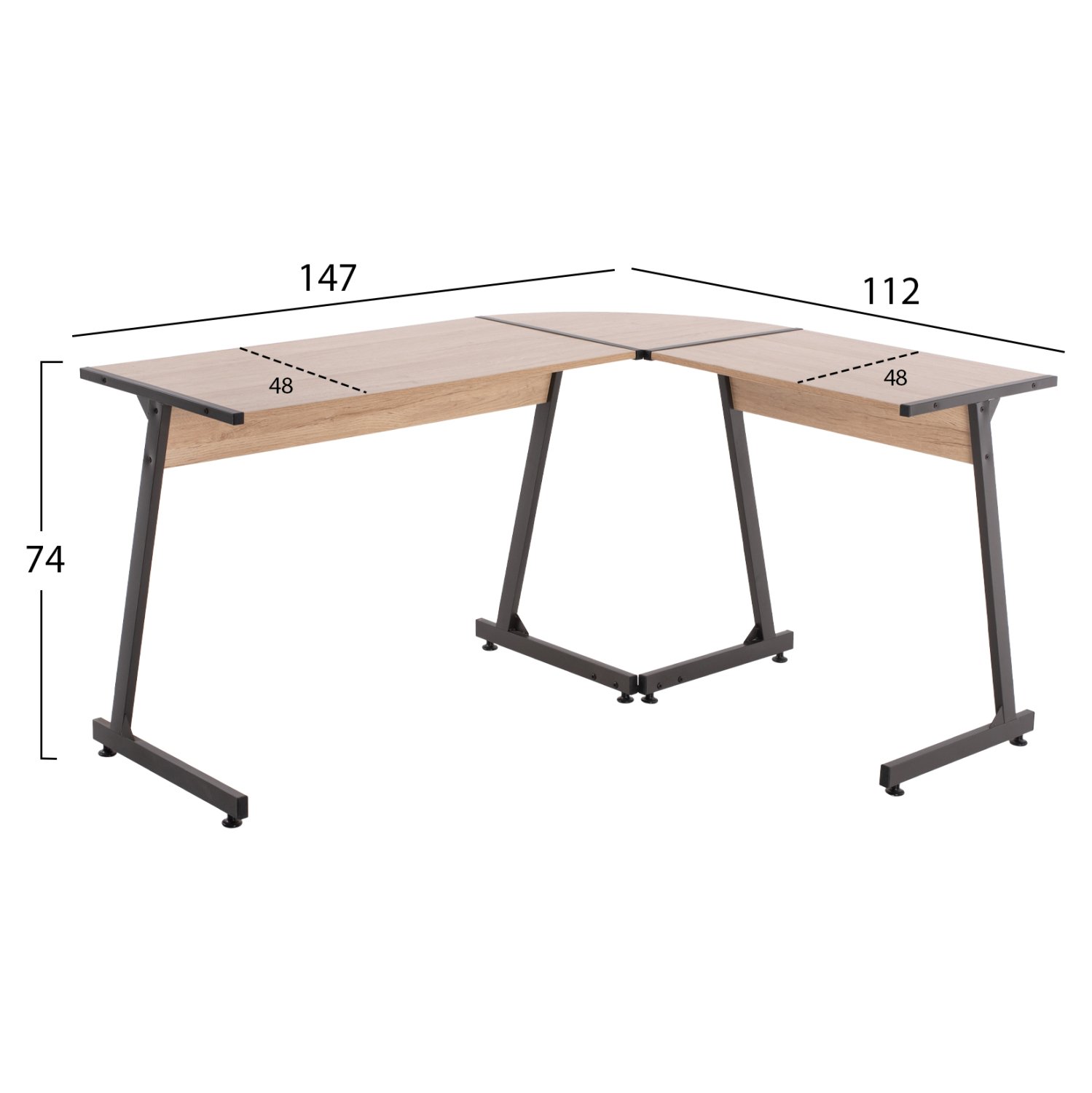 ΓΡΑΦΕΙΟ ΓΩΝΙΑΚΟ HM9319 ΜΕΤΑΛΛΙΚΟ ΣΚΟΥΡΟ ΓΚΡΙ ΜΕ MDF ΕΠΙΦΑΝΕΙΑ ΣΕ ΟΑΚ 147X112X74Υεκ.