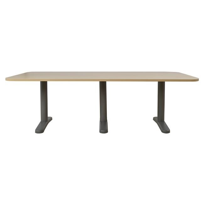 Επαγγελματικό γραφείο συνεδριάσεων, κατασκευασμένο από ανθεκτική μελαμίνη σε απόχρωση οξιάς και μεταλλικά πόδια σε γκρι απόχρωση.