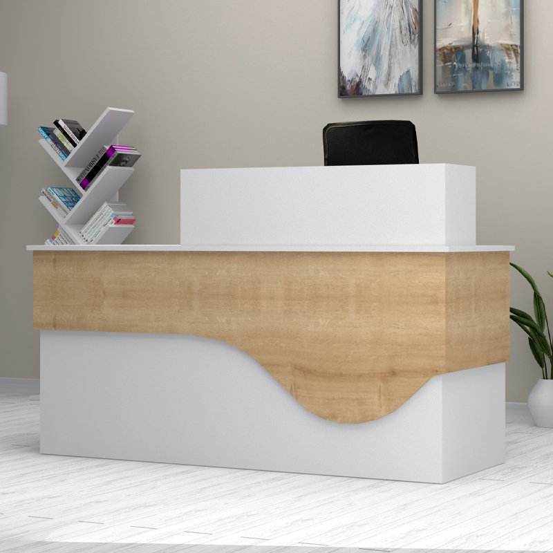 Γραφείο υποδοχής – reception Dustin Megapap χρώμα λευκό – φυσικό οξιάς 160x60x101,8εκ.