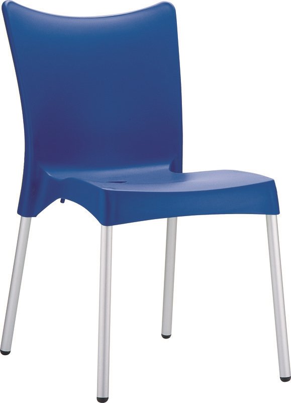Juliette καρέκλα του οίκου Siesta σε χρώμα blue,κατασκευασμένη από πολυπροπυλένιο ενισχυμένο με 20% fiber glass και πόδια από ανοδειωμένο αλουμίνιο Φ25mm για απόλυτη αντοχή στον χρόνο.Κατάλληλη για εσωτερική και εξωτερική χρήση. Είναι στοιβαζόμενη και ιδανική για επαγγελματική χρήση.