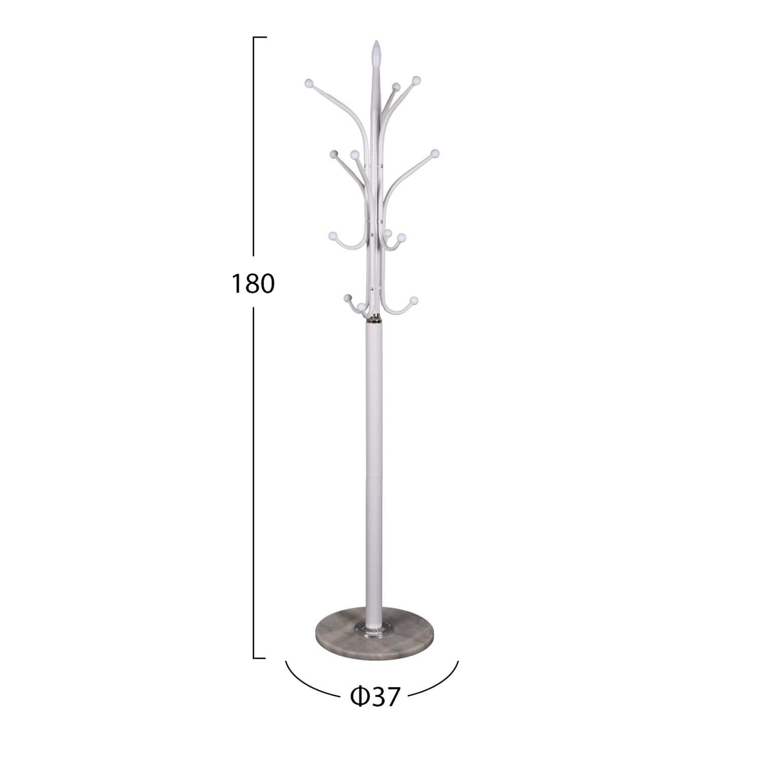 Ο καλόγερος ΗΜ9573.02 σε ΛΕΥΚΟ χρώμα, είναι ένα έπιπλο χρησιμότατο για κάθε χώρο. Είναι μεταλλικός με στρογγυλή μαρμάρινη βάση που προσφέρει χαμηλό κέντρο βάρους, και παρέχει 13 θέσεις κρέμασης (μαζί με την κορυφή) με «μπαλάκι» στις άκρες. Πρόκειται για ένα πανέμορφο κομμάτι που θα ομορφύνει την είσοδο του σπιτιού ή του επαγγελματικού σας χώρου.