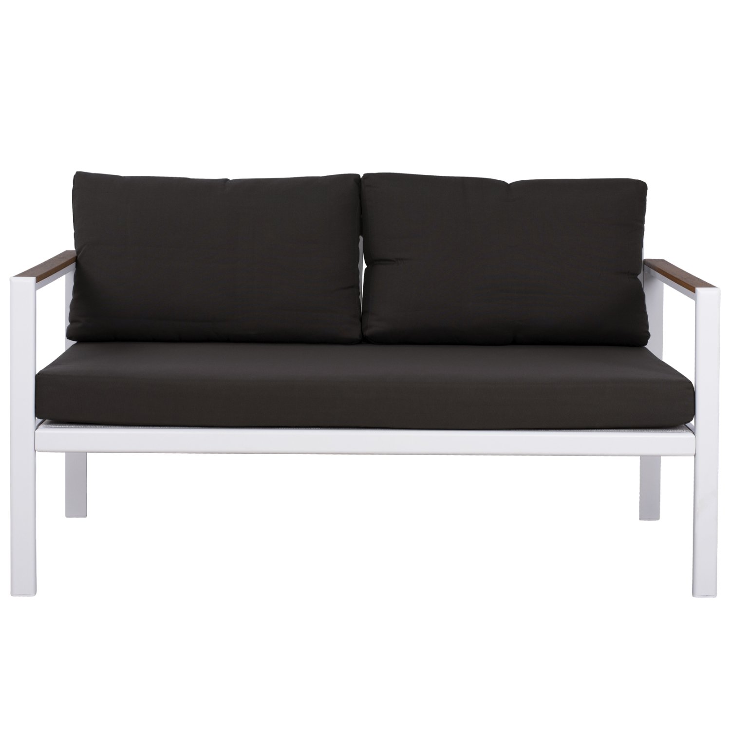Ο SAFIYA είναι ένας όμορφος 2θέσιος καναπές εξωτερικού χώρου σε συνδυασμό ΛΕΥΚΟΥ-ΑΝΘΡΑΚΙ. Ο συνδυασμός του σκελετού αλουμινίου σε ΛΕΥΚΟ χρώμα με τα μεγάλα μαξιλάρια πλάτης και καθίσματος με πολυεστερικό ύφασμα σε ΑΝΘΡΑΚΙ χρώμα είναι μοναδικός, και μπορεί να αλλάξει άμεσα την εικόνα οποιουδήποτε εξωτερικού χώρου. Χαρακτηριστικό γνώρισμα αυτού του καναπέ είναι ότι τα πόδια είναι ψηλά, με αποτέλεσμα και το ύψος του καθίσματος να είναι ψηλό, ενώ η «πινελιά» με το polywood στα μπράτσα δίνει έναν τόνο πολυτέλειας που δεν περνάει απαρατήρητη.