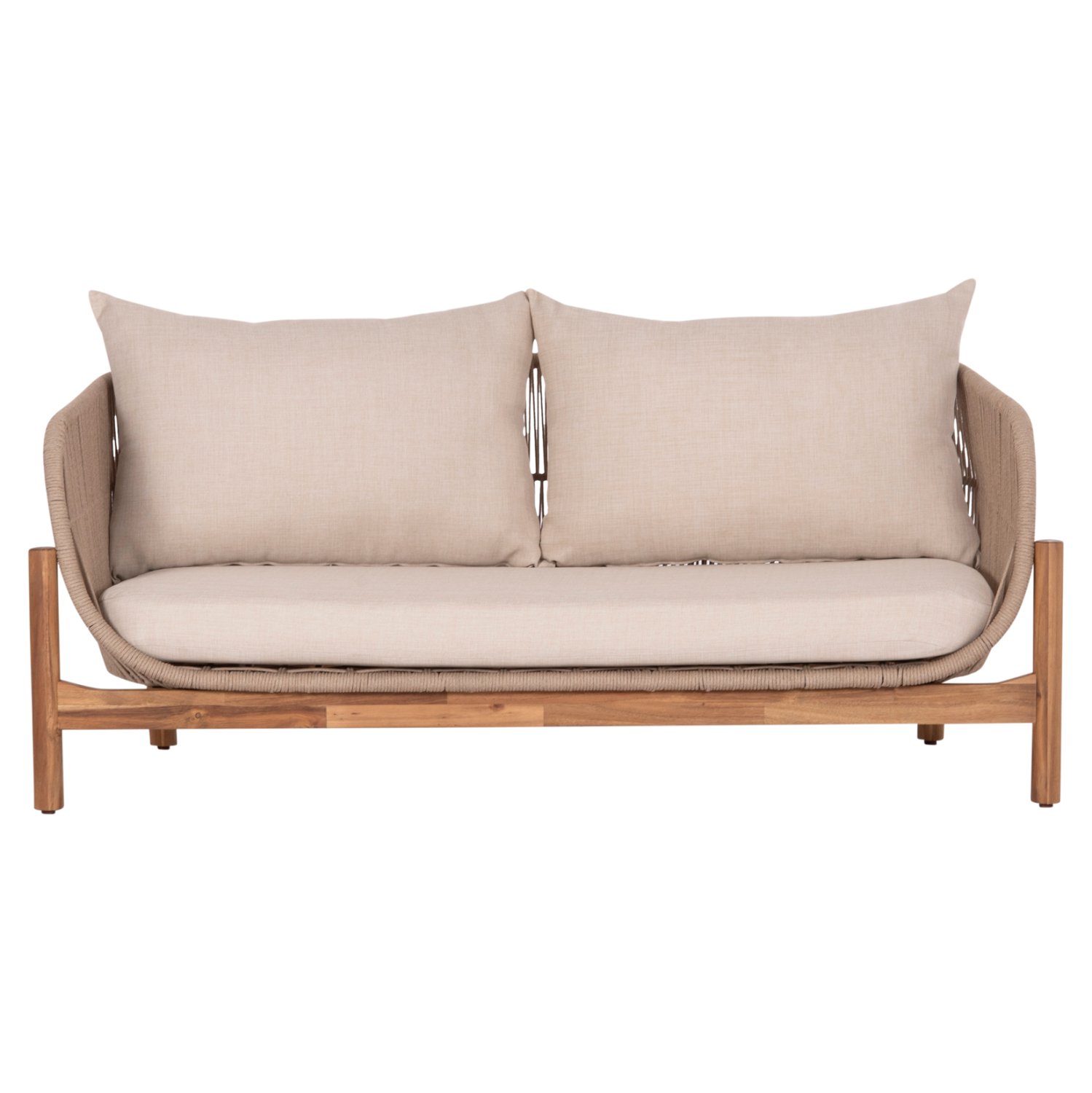 Σας παρουσιάζουμε τον 2-θέσιο καναπέ εξωτερικού χώρου SANJI. Διαθέτει σκελετό βάσης από ξύλο ακακίας σε ΦΥΣΙΚΟ χρώμα, και πλαίσιο καθίσματος από αλουμίνιο επενδυμένο με σχοινί σε ανοιχτό ΜΠΕΖ χρώμα! Τα μαξιλάρια είναι επενδυμένα με πολυεστερικό ύφασμα σε ΜΠΕΖ χρώμα επίσης, και διαθέτουν γέμισμα με μέτριας σκληρότητας αφρώδη υλικά για την μεγαλύτερη δυνατή άνεση, αλλά και φερμουάρ. Ιδανικός για να συμπληρώσει ένα σετ ανάλογης αισθητικής αλλά εννοείται ότι μπορεί να «σταθεί» και μόνος του σε οποιοδήποτε εξωτερικό χώρο!