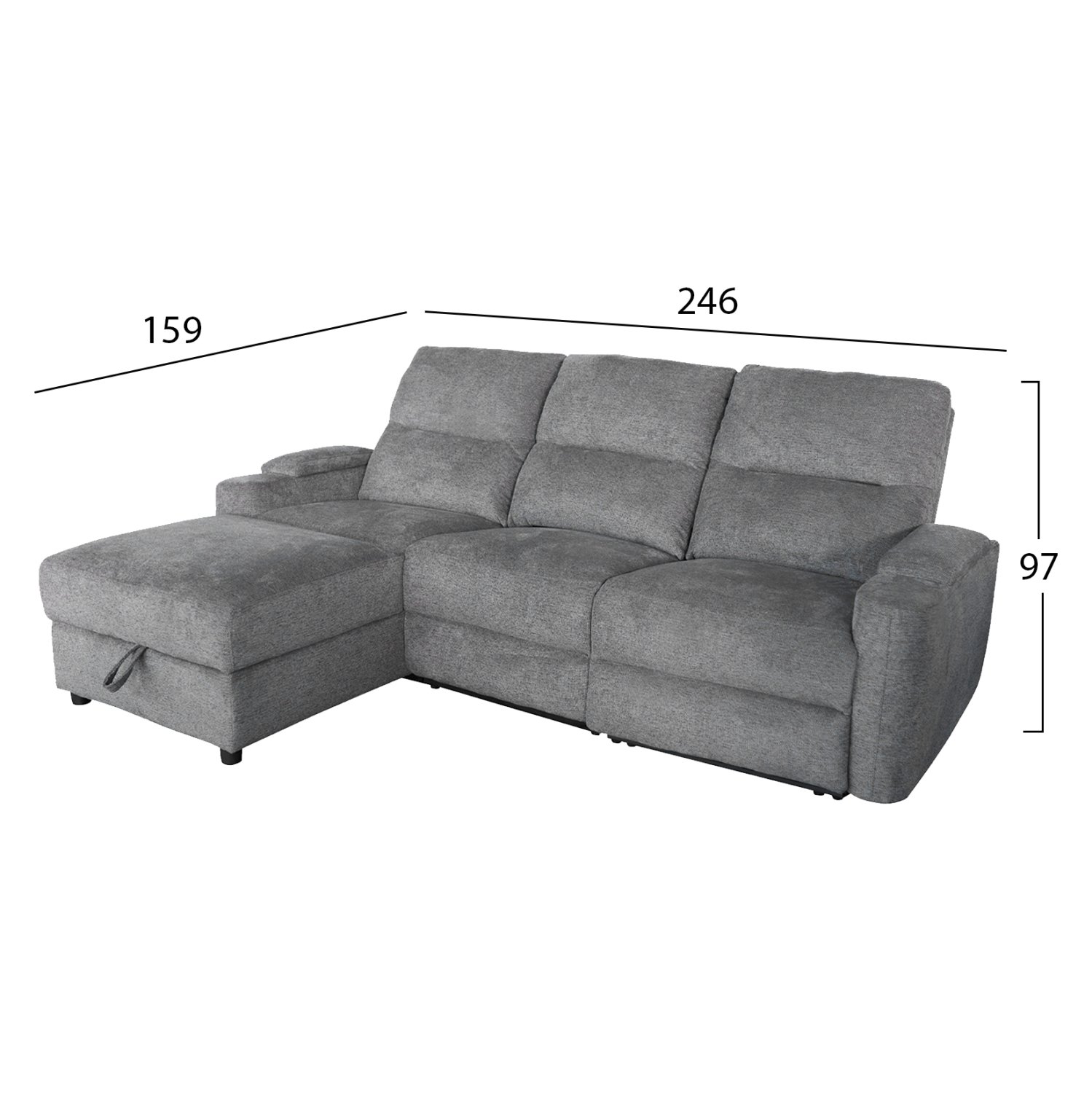 ΚΑΝΑΠΕΣ ΑΡΙΣΤΕΡΗ ΓΩΝΙΑ SYNTHIA HM3308.03L ΑΝΑΚΛΙΣΗ & ΑΠΟΘ.ΧΩΡΟΣ–ΓΚΡΙ 246x159x97Υεκ