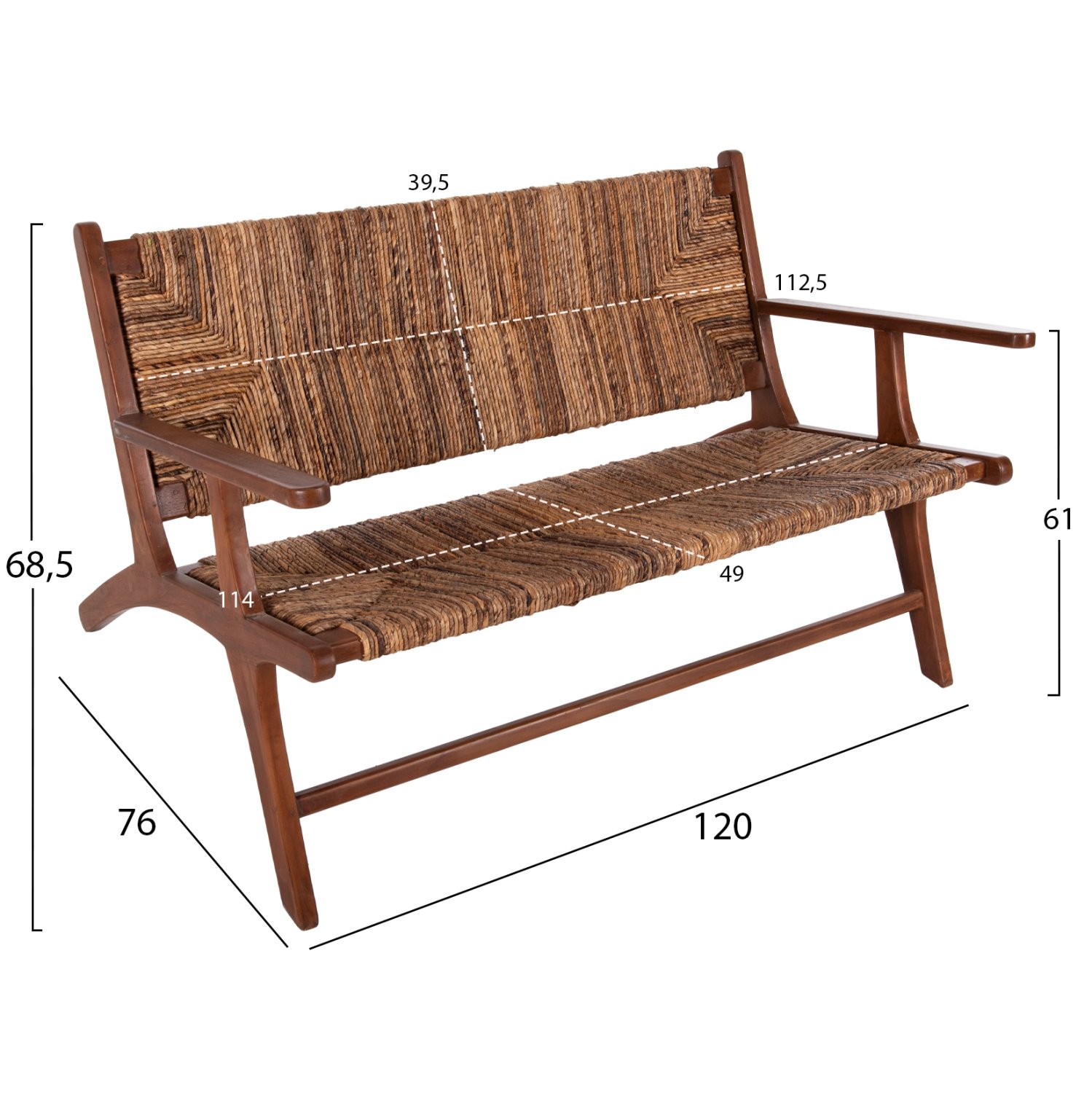 ΚΑΝΑΠΕΣ ΕΞΩΤ.ΧΩΡΟΥ 2-ΘΕΣΙΟΣ TONDO HM9915 ΞΥΛΟ ΤΕΑΚ ΚΑΙ ΣΧΟΙΝΙ ΜΠΑΝΑΝΑΣ 120x76x68,5Υεκ