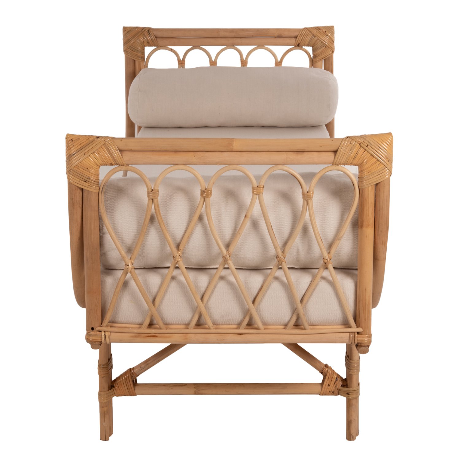 Ο CHARMELLA είναι ένας καναπές μοναδικός στο είδος του. Δεν διαθέτει πλάτη ενώ τόσο τα μπράτσα όσο και τα πόδια είναι ψηλά. Γενικά, το design του παραπέμπει περισσότερο σε μεγάλο ανάκλιντρο παρά σε καναπέ όπως τον ξέρουν όλοι. Διαθέτει αναπαυτικό στρώμα με ΜΠΕΖ ύφασμα και δύο κυλινδρικά μαξιλάρια μπράτσων συμπληρώνουν όμορφα αυτόν τον πολύ ιδιαίτερο καναπέ. Είναι εξολοκλήρου κατασκευασμένος από Rattan στο φυσικό του χρώμα και είναι σίγουρο ότι θα αποτελέσει πραγματικό «κόσμημα» στον χώρο σας.