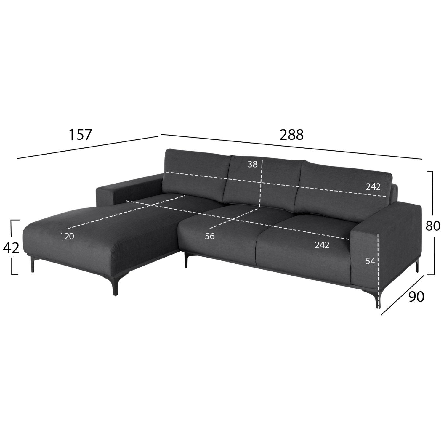 ΚΑΝΑΠΕΣ ΓΩΝΙΑ (ΑΡΙΣΤΕΡΗ) NOA HM3278.02L ΑΝΘΡΑΚΙ ΥΦΑΣΜΑ 288×90-157×67-80Υεκ.