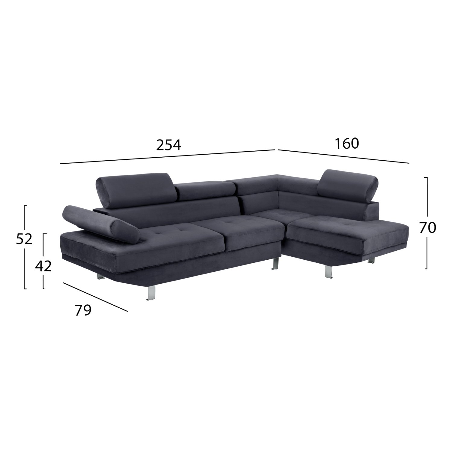 ΚΑΝΑΠΕΣ ΓΩΝΙΑ FAITH ΒΕΛΟΥΔΟ ΓΚΡΙ HM3156.01 254×79-160×70-84 εκ.